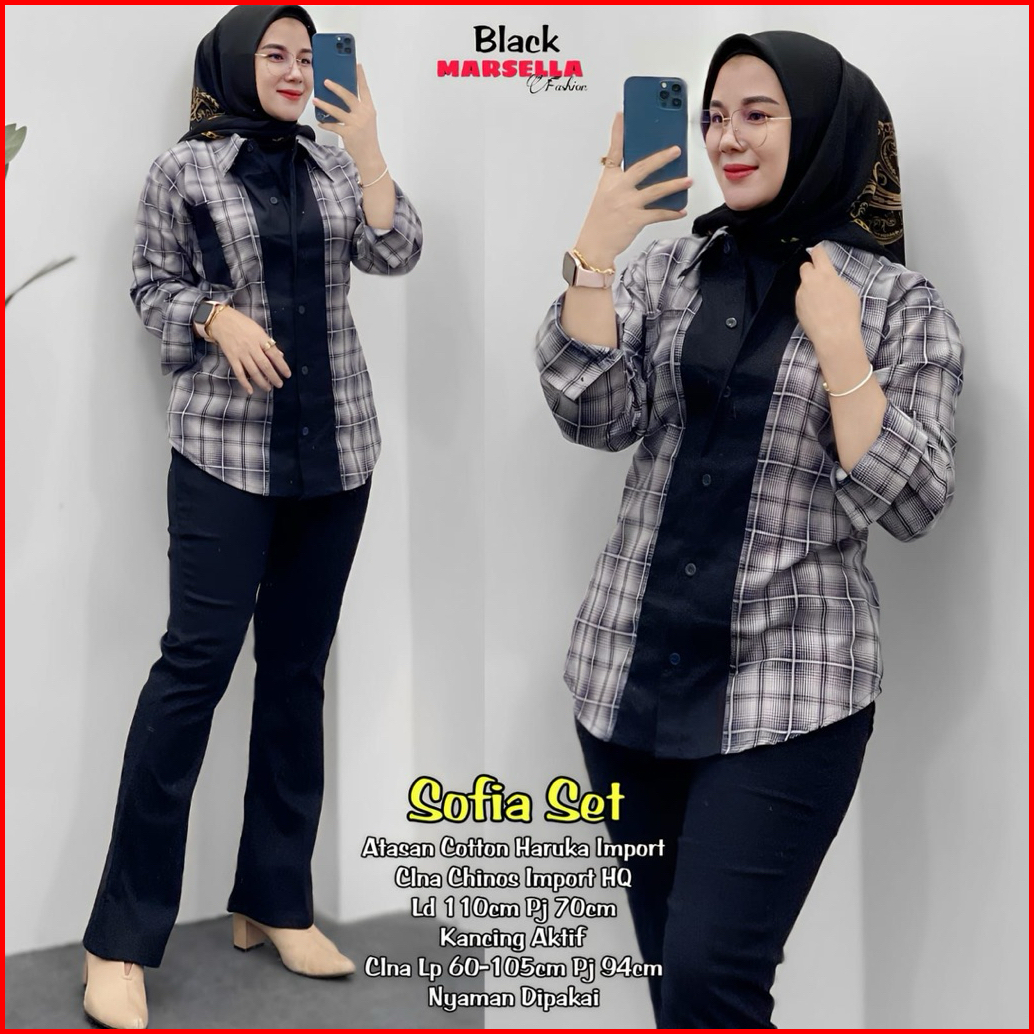 Setelan Pakaian Busana Wanita Set Motif Kotak Kekinian Celana Terbaru