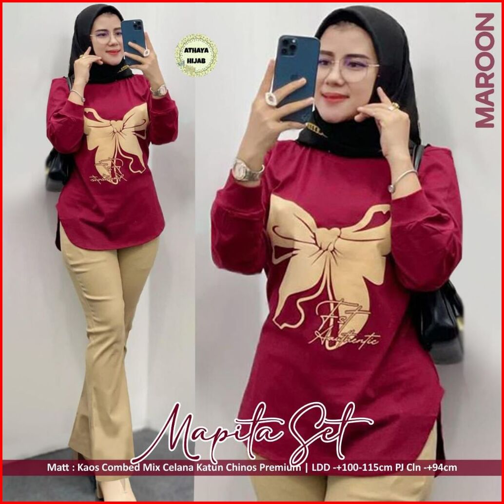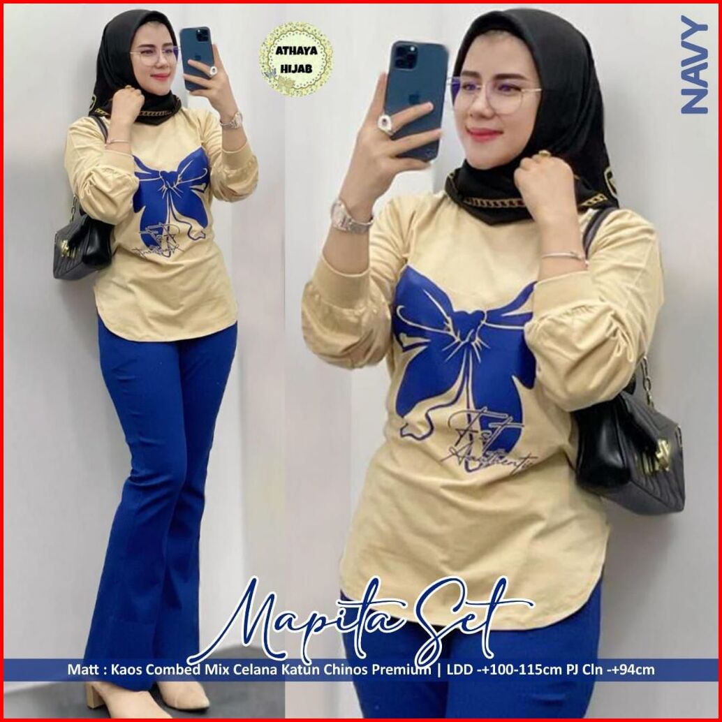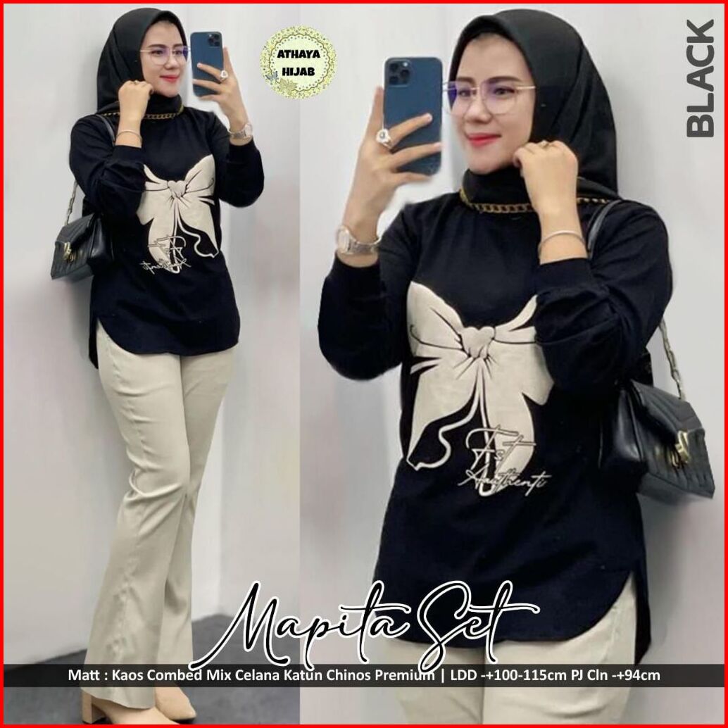 Mapita Set By Athaya Setelan Wanita Atasan Mix Celana Bahan Combed Mix Chinos Best Seller