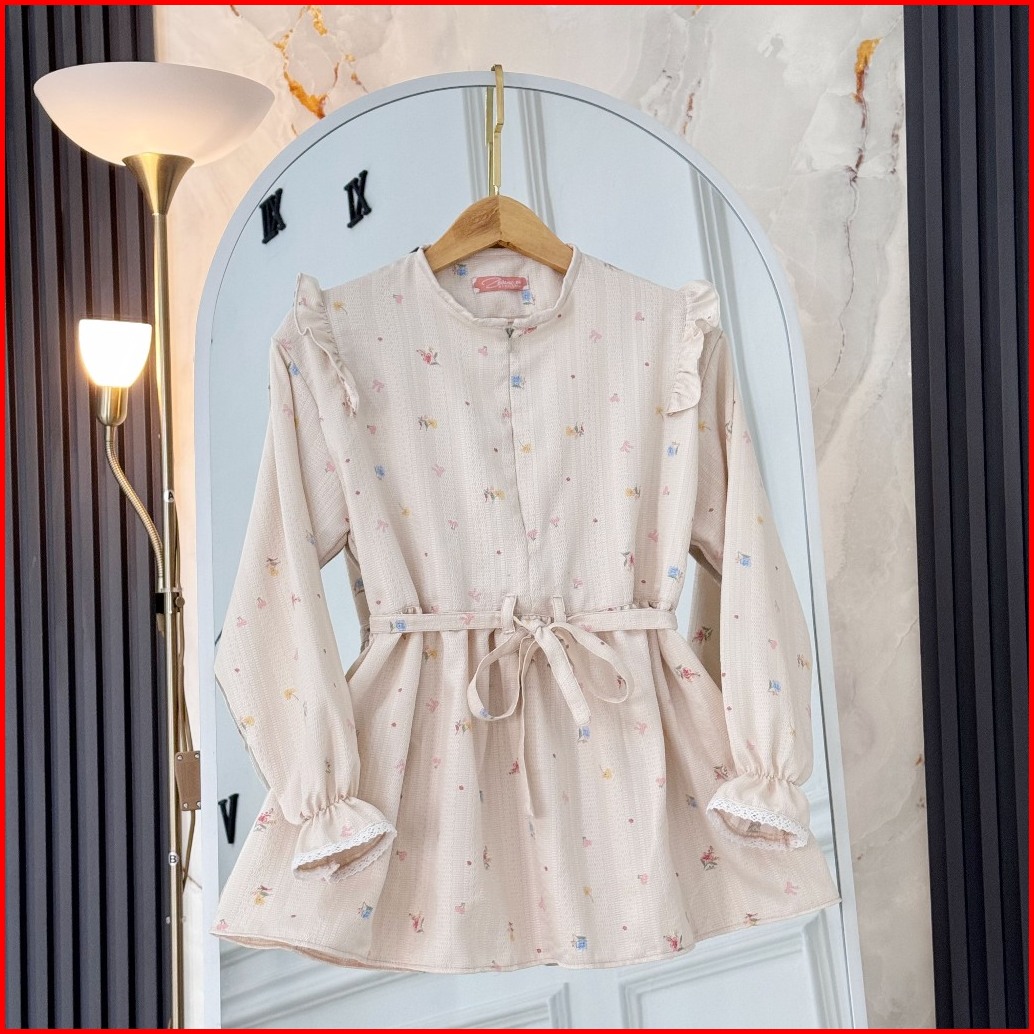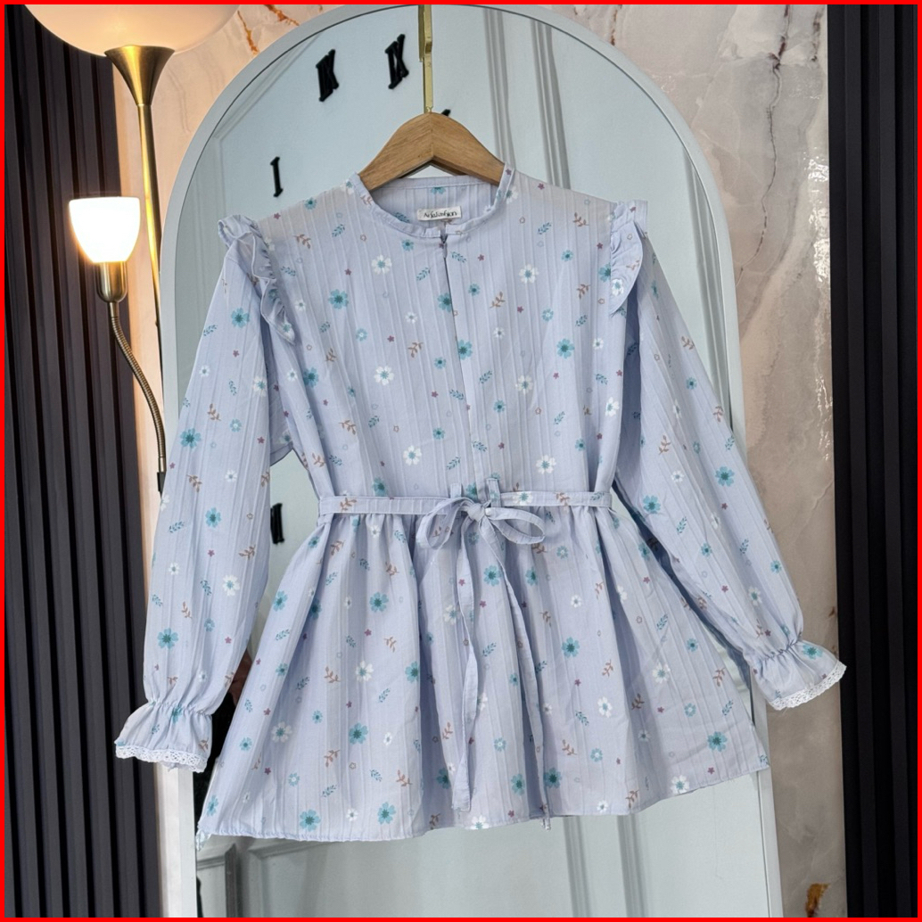 Edenia Blouse Wanita Lengan Panjang Motif Bunga Korean Style