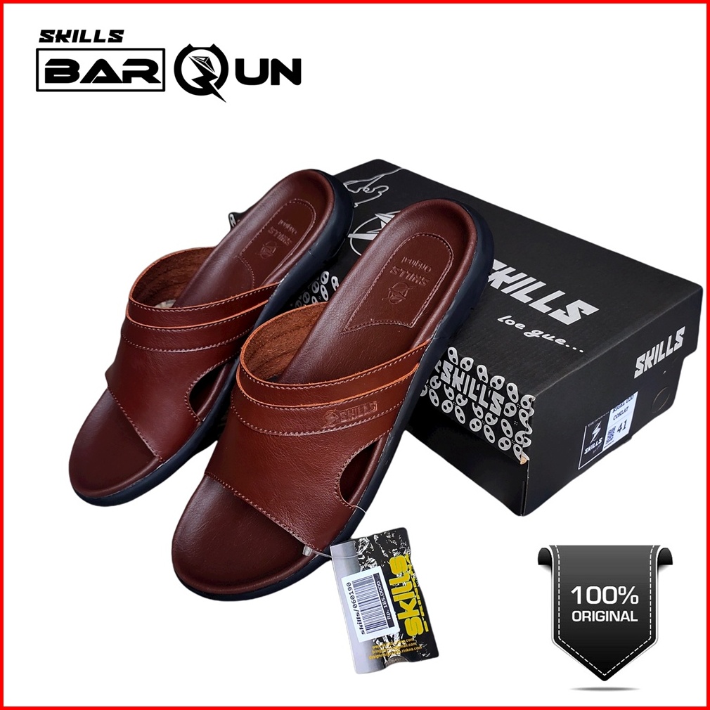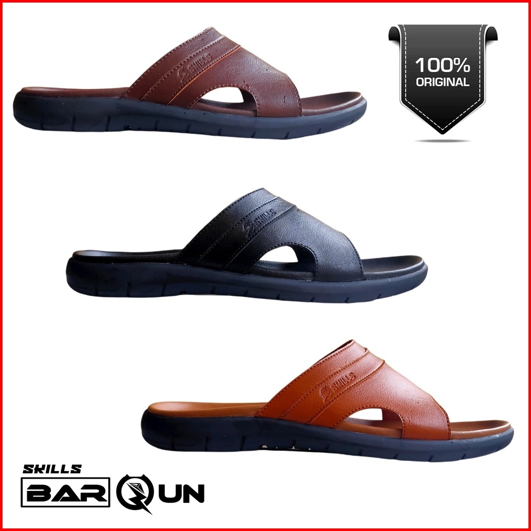 Skills Barqun Sendal Sliper Pria Kulit Bukan Kickers Slop 100 Ori