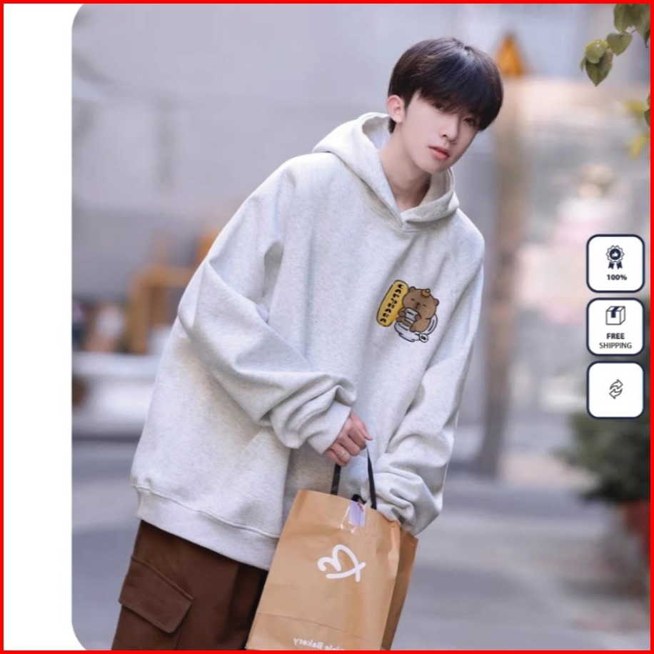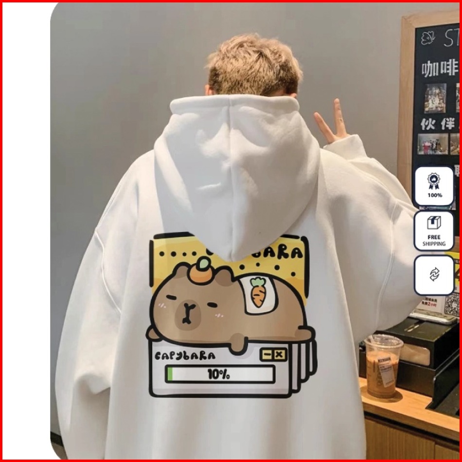 Harvional Hoodie Sweater Jemper Bear Capybara Bahan Fleece Size S - Xxl Pria Wanita