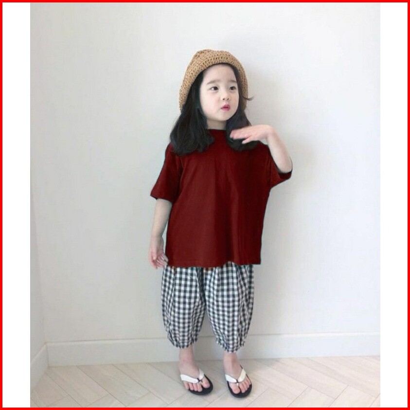Setelan Anak Perempuan Over Size Celana Kulot Usia 2-9 Tahun Amora Set Bahan Katun Kotak Kotak