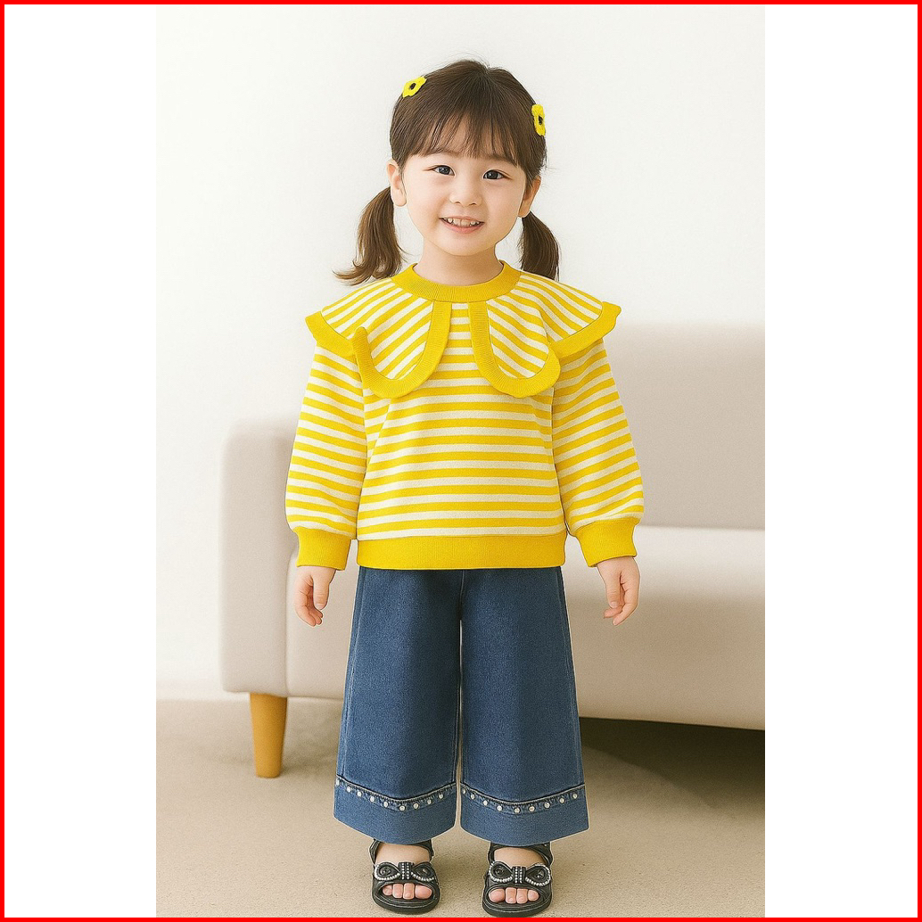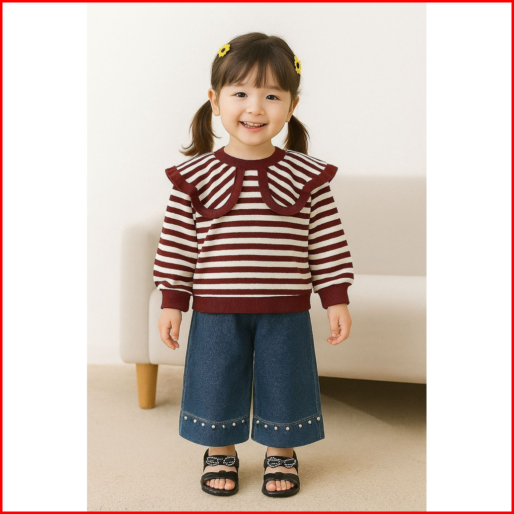 Setelan Anak Perempuan Baju Salur Dan Celana Denim Panjang Anak 1-5 Tahun Ardan Baju Anak