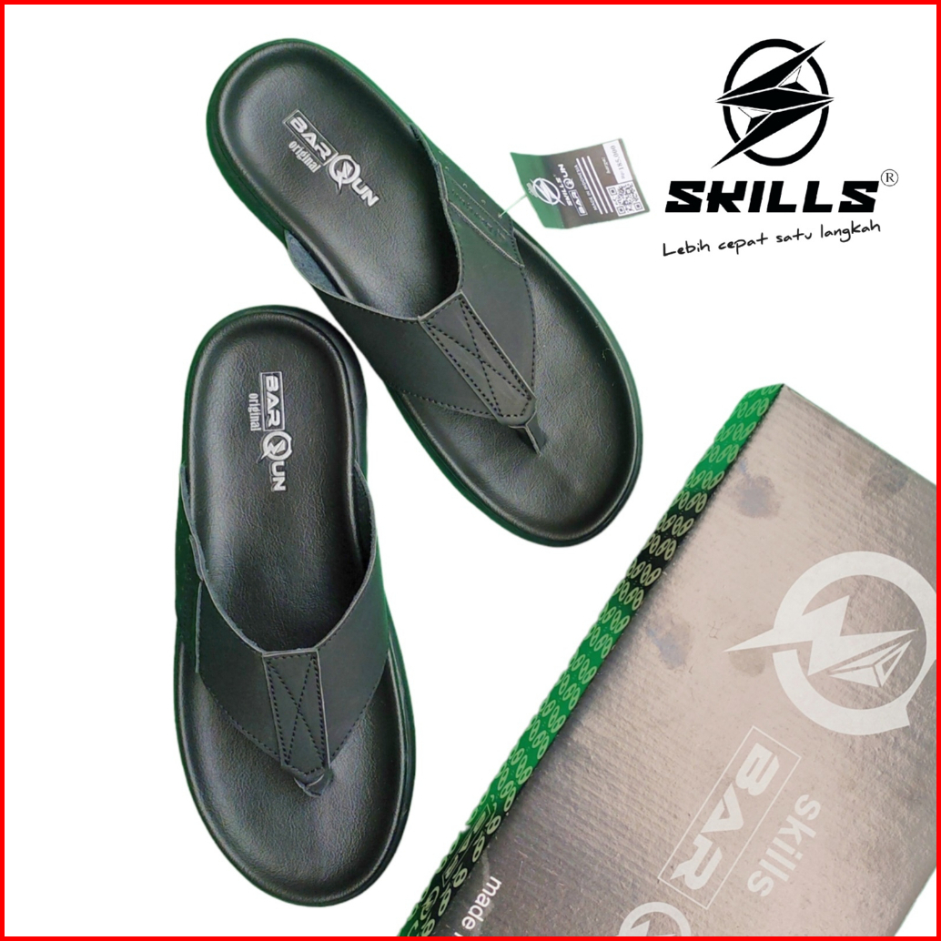 Skills Sandal Slop Jepit Pria Kulit Osaka Coklat Hitam Tan