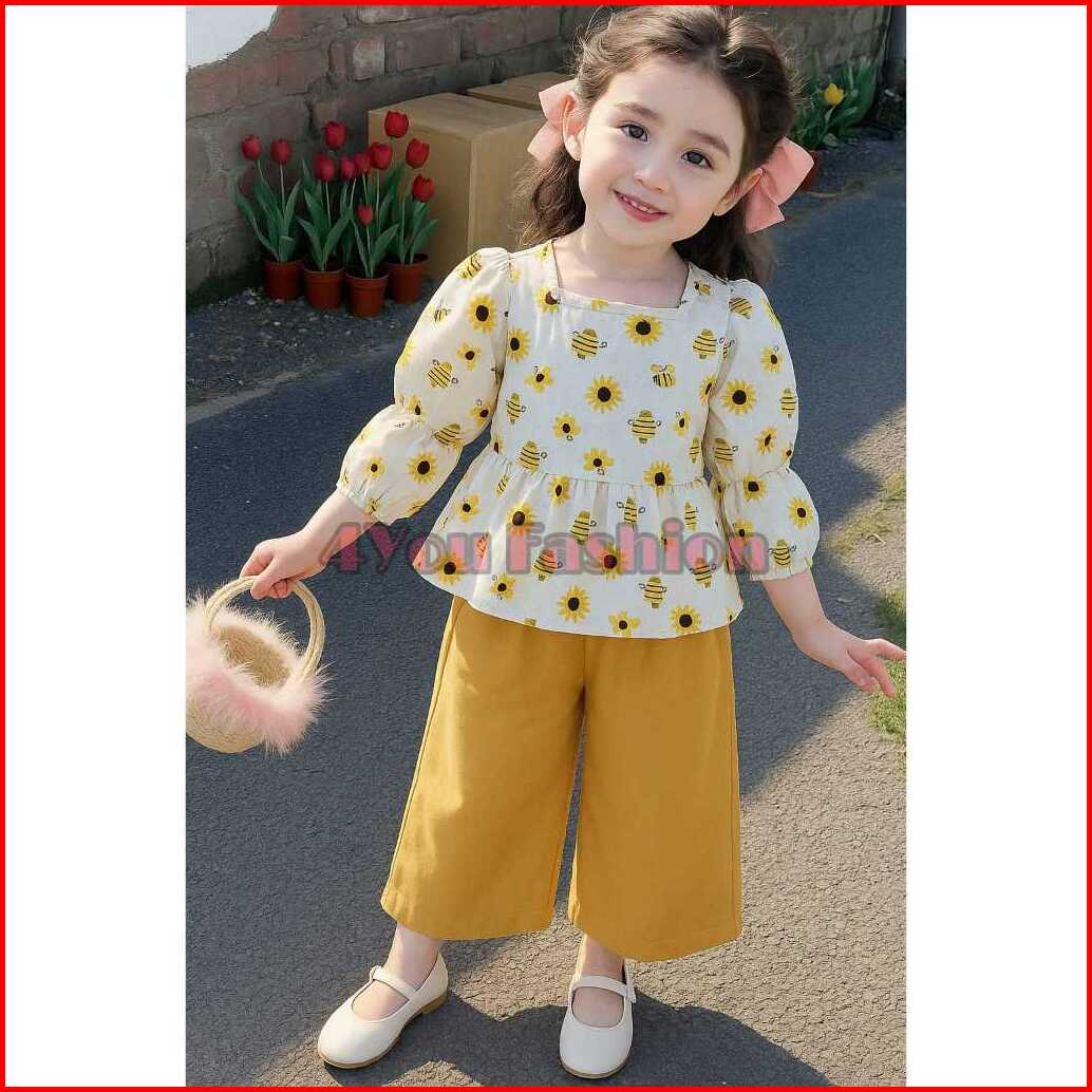 Setelan Anak Perempuan Pemakaian 1-10 Tahun Bahan Katun Toyobo Kekinian Motif Lebah
