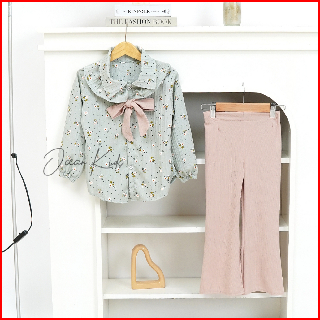 Setelan Anak Perempuan Lorenza Motif Pita Celana Cutbray Usia 1-11 Tahun Oceankids