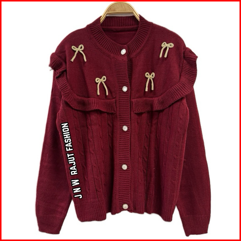 Dianra Cardigan Knitwear Ruffle Pita Cablle Atasan Baju Rajut Wanita Lengan Panjang