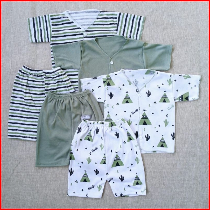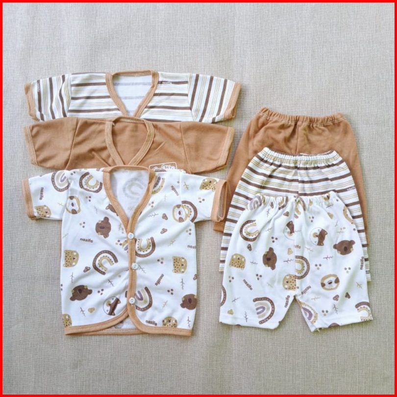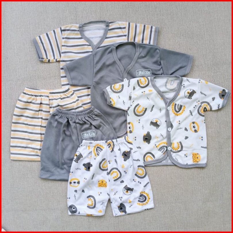 3stel Baju Bayi Newborn Lengan Pendek Celana Pendek Estimasi 0-3bulan