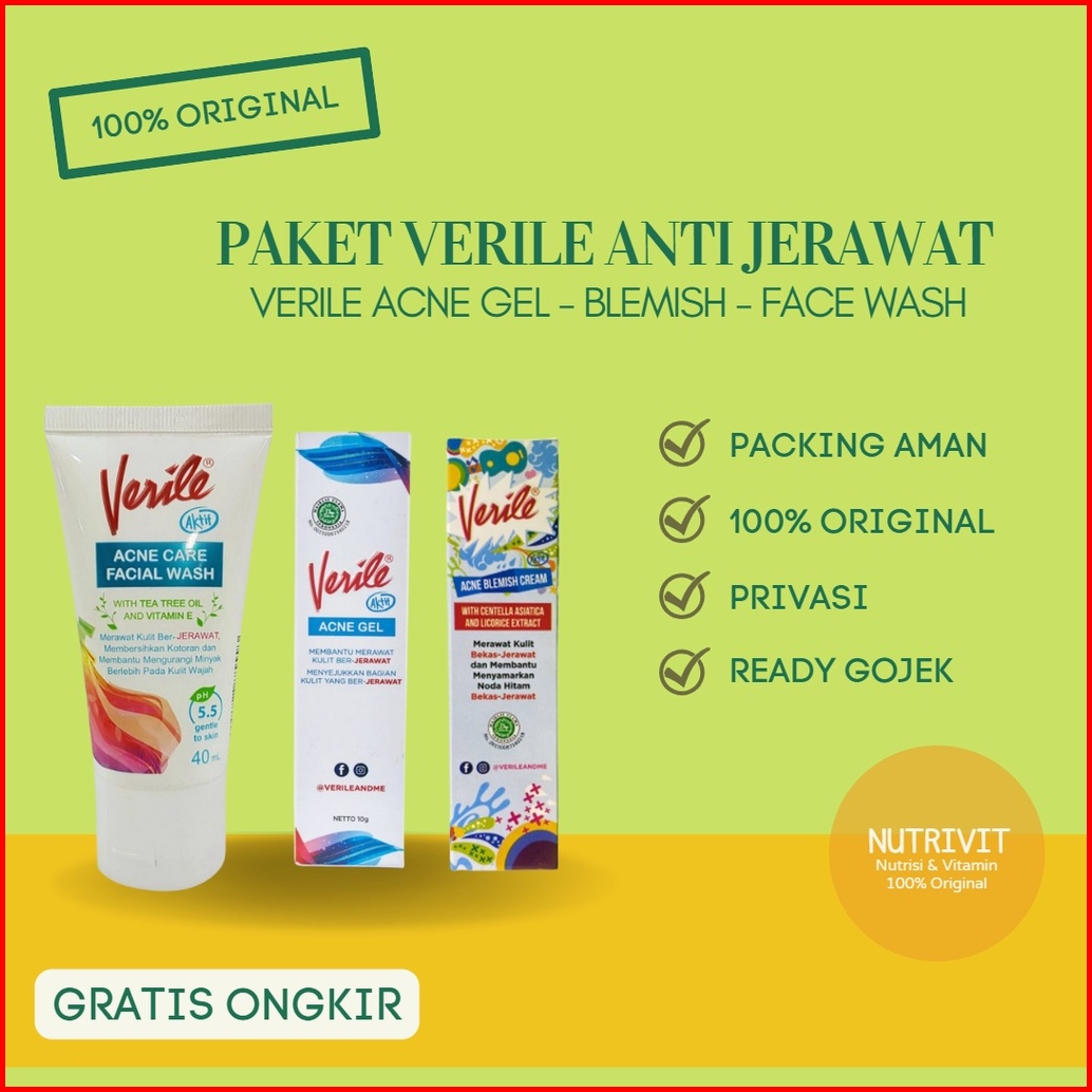 Paket Anti Jerawat Verile Verile Blemish Face Wash Acne Gel - Kit Perawatan Jerawat - Per Paket