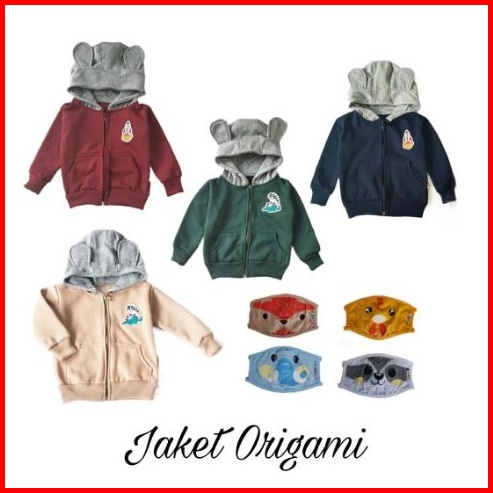 Jaket Anak Sweater Hoodie Anak Bayi Jaket Lucu Merk Origami 3-12 Bulan Free Masker
