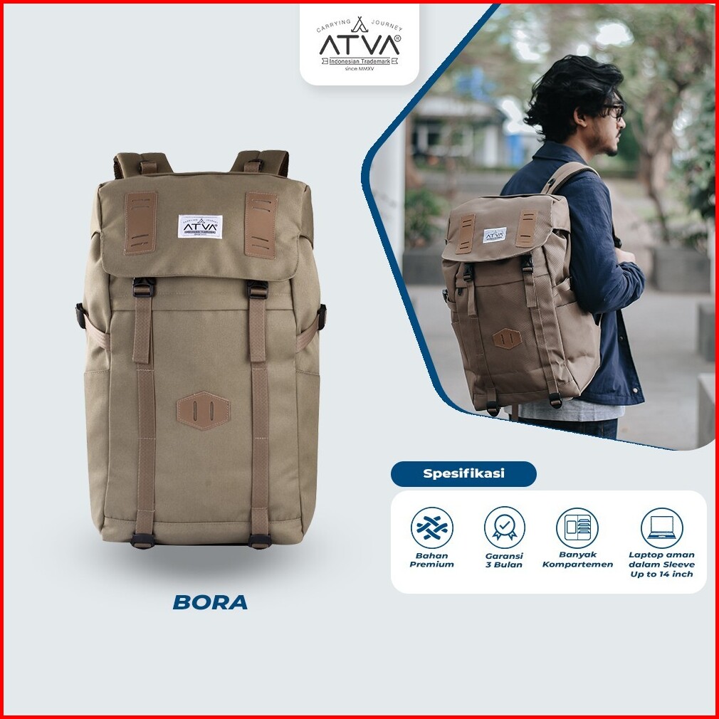 Tas Ransel Pria Wanita Muat Laptop 14 Inch Tas Backpack Daily Tas Gendong Cewek Cowok Backpack Kuliah Kerja Atva Bora Kh