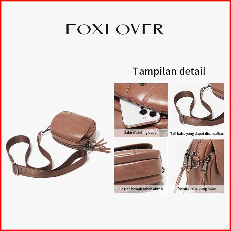 Foxlover Tas Selempang Kulit Premium Wanita Stylish Tali Yang Dapat Disesuaikan