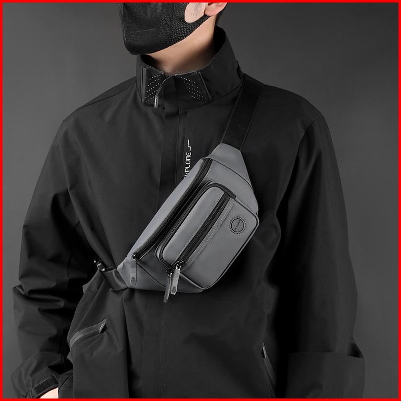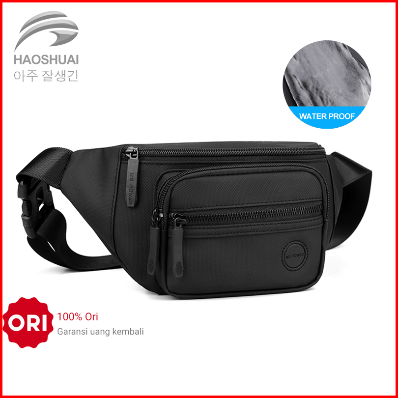 Tas Selempang Pria Haoshuai 1258 Waistbag Waterproof Bahan Anti Air Baeos