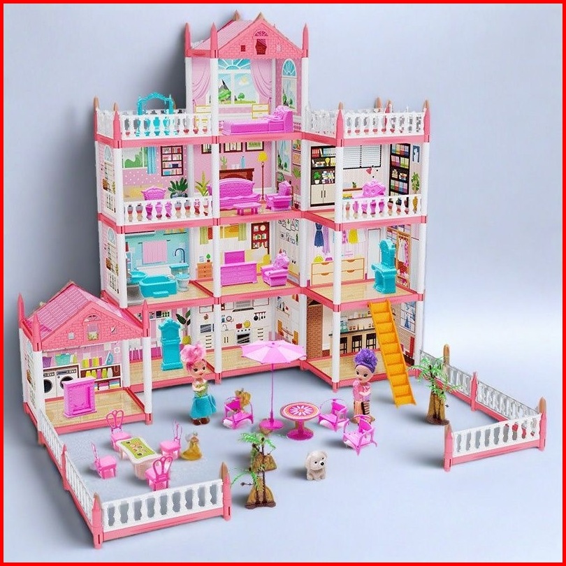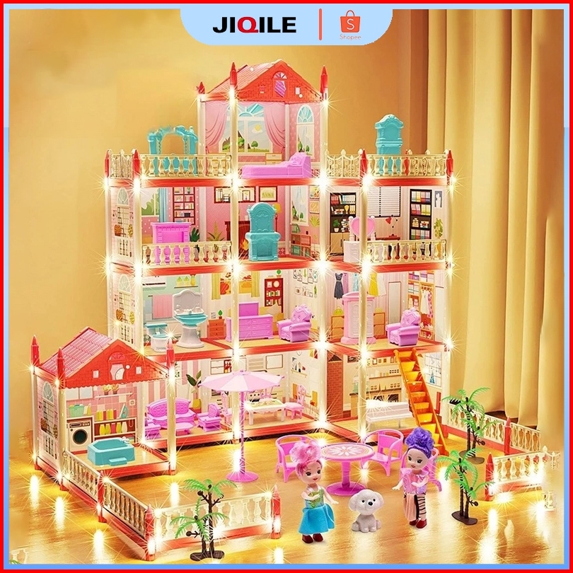 Jiqile Mainan Rumah Rumahan Anak Perempuan 3d Princess Kastil Villa Dengan Lampu Dan Boneka Perakitan Diy Rumah Mainan