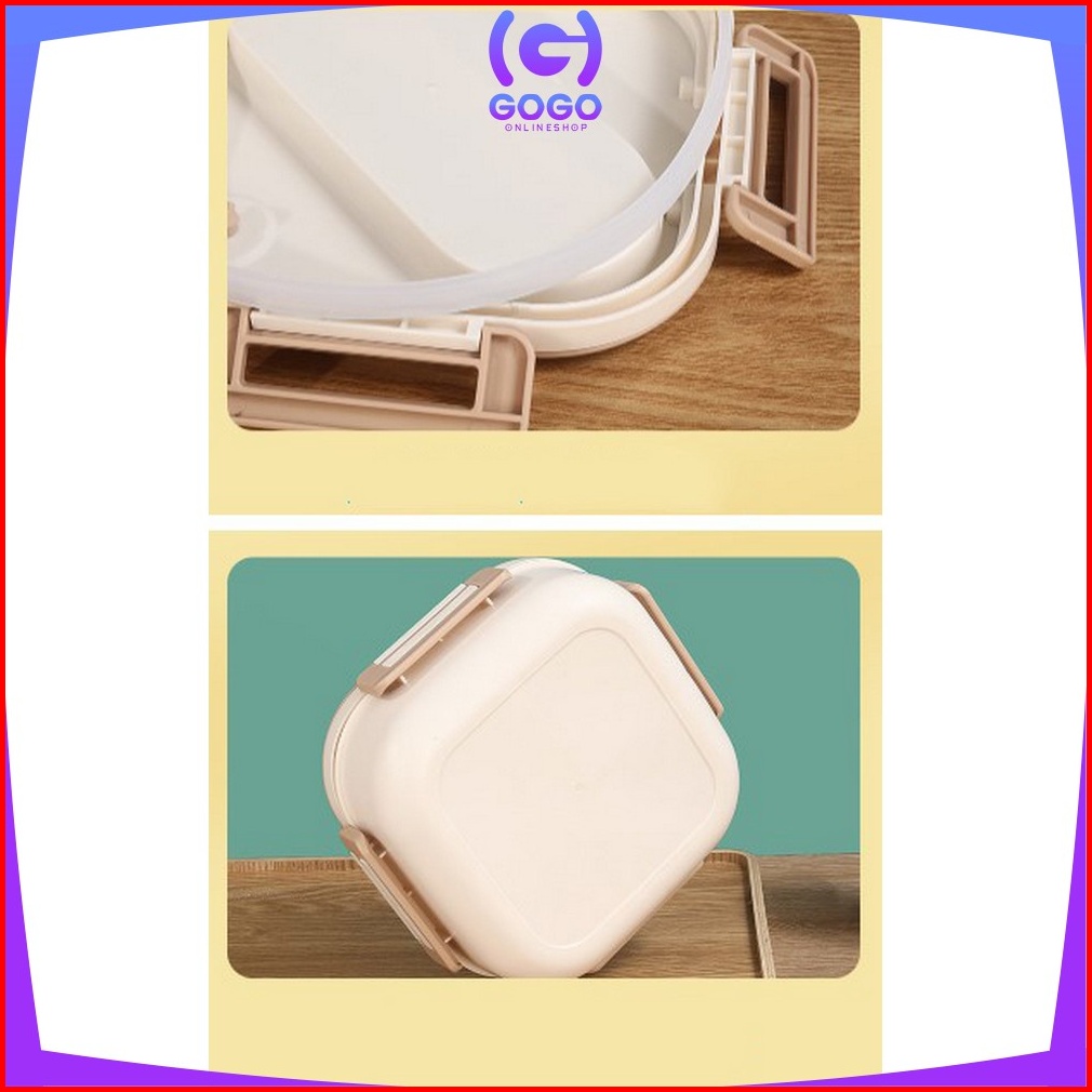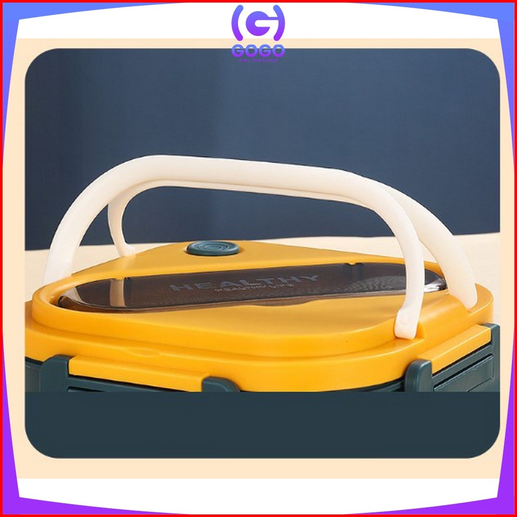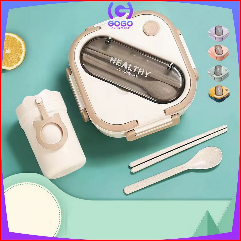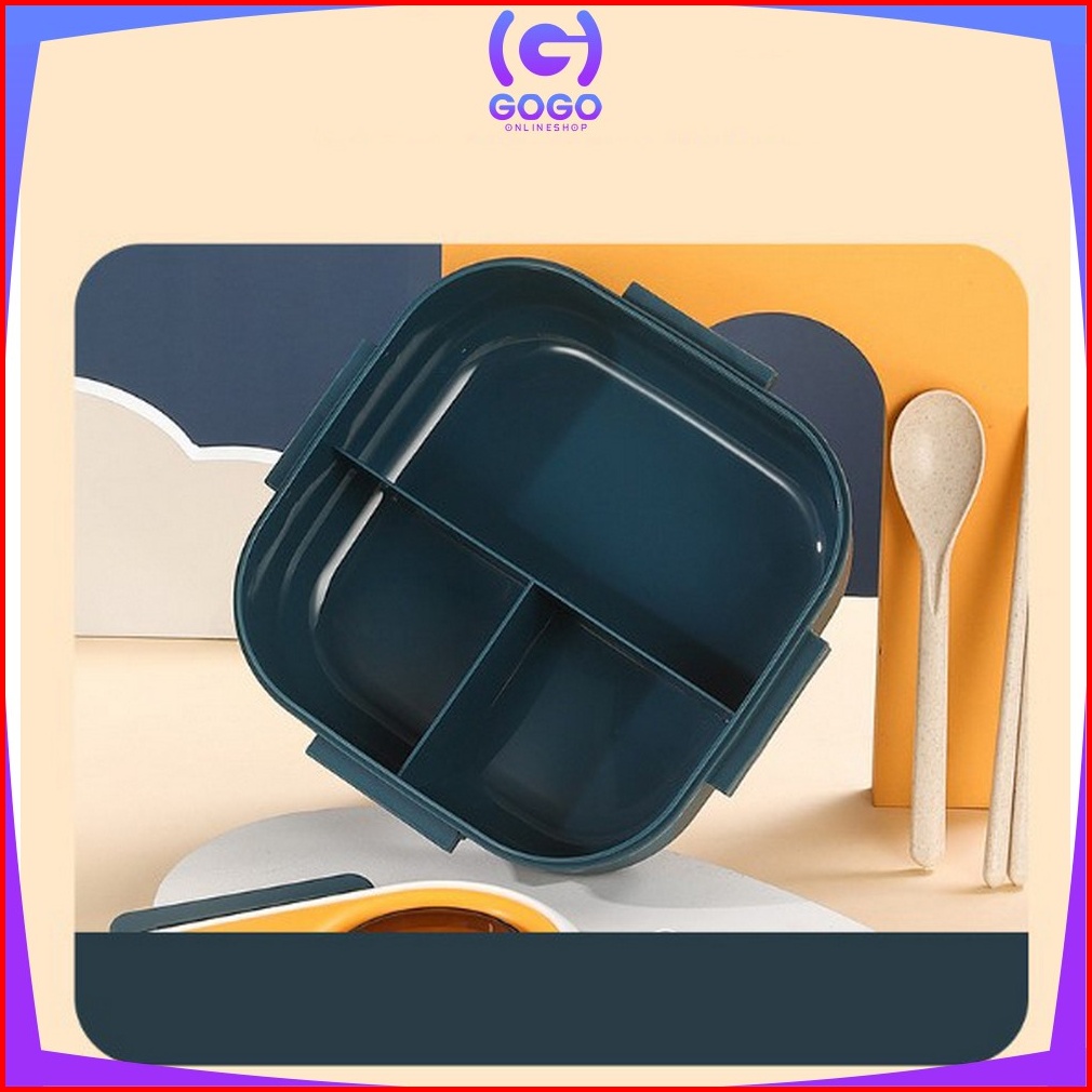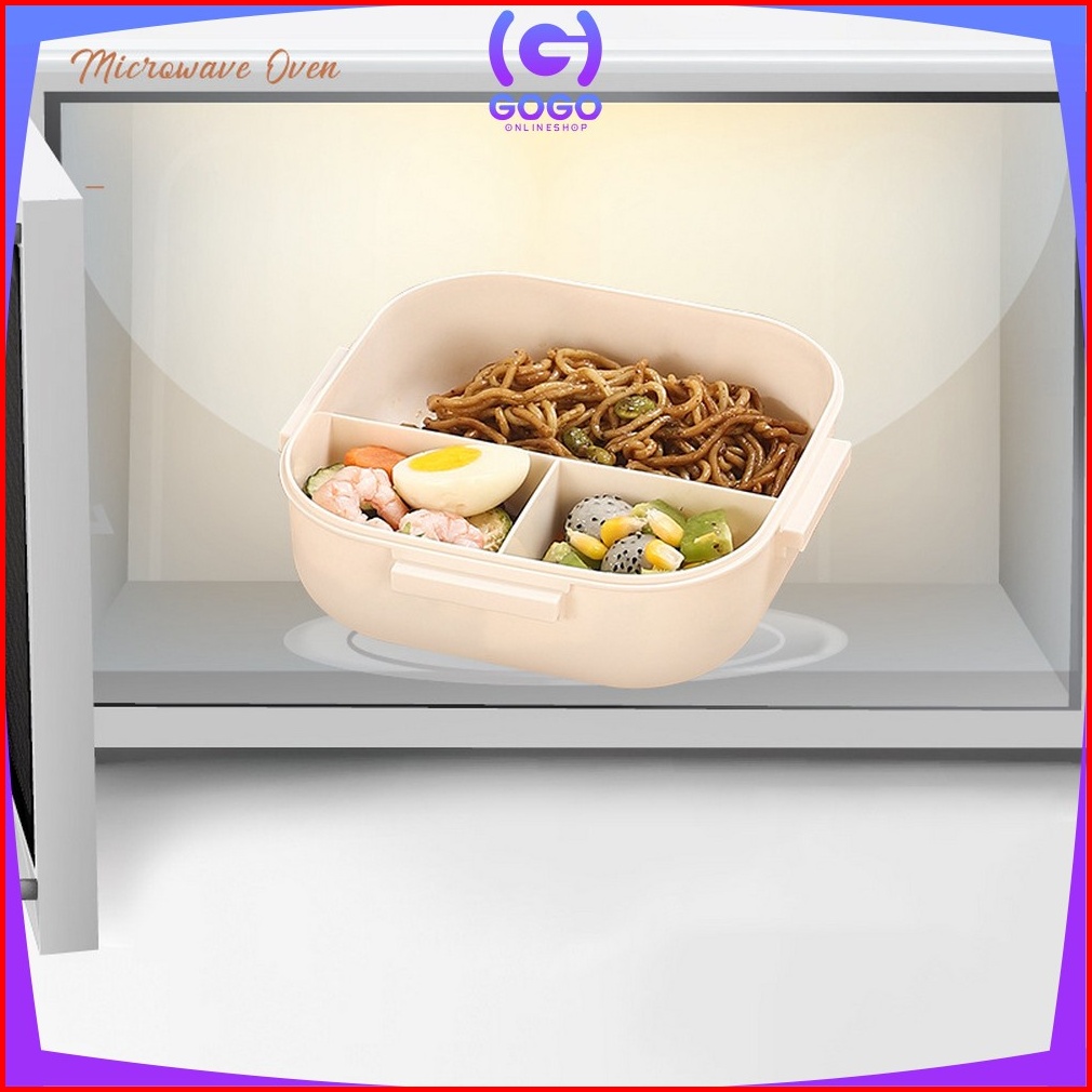 Gogo-c757 Lunch Box Set Alat Makan 3 Sekat Anti Tumpah Kotak Bekal Makan Anak Free Sendok Sumpit Anti Bocor