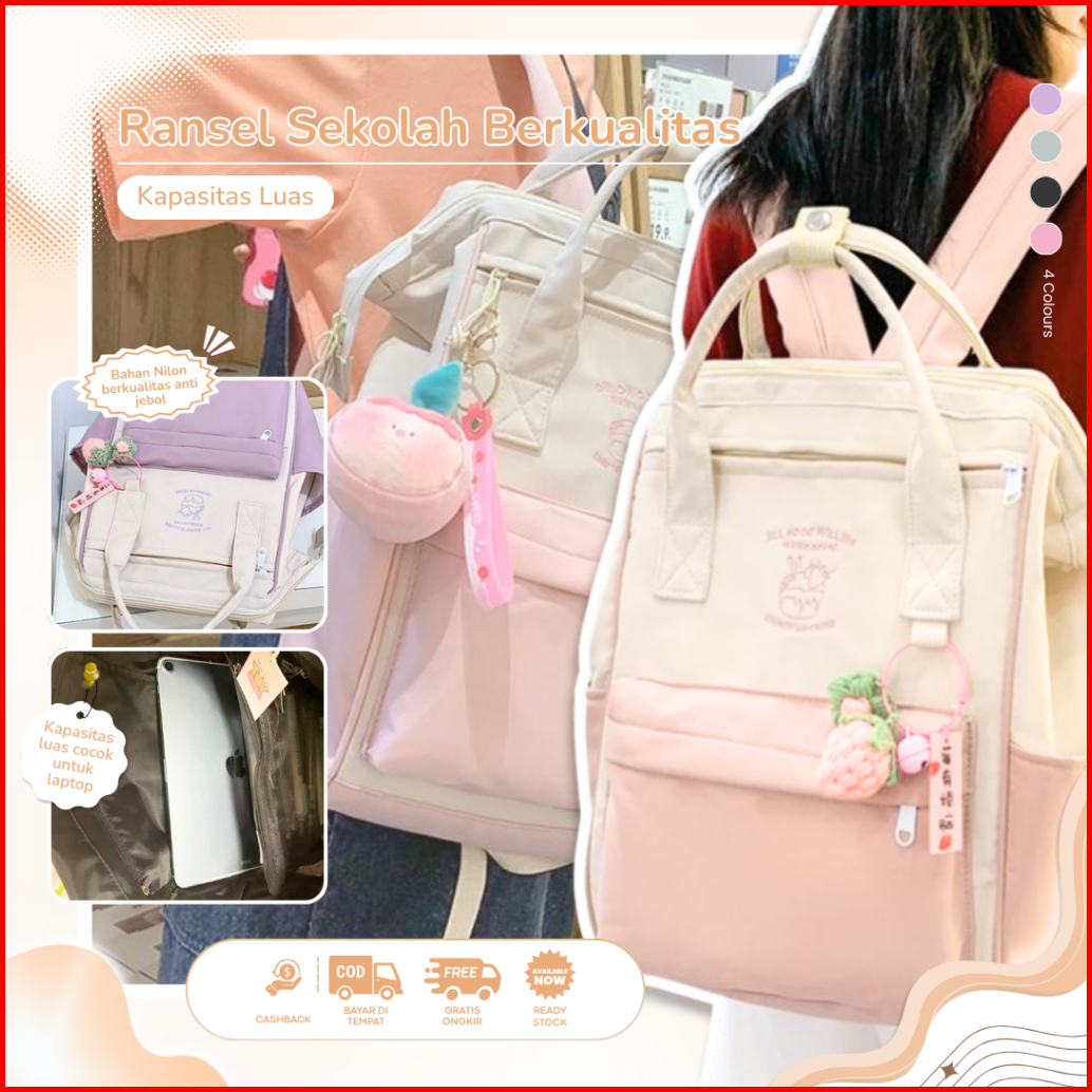 Tas Ransel Wanita Aesthetic Korea2in1 Tote Bag Sekolah Kuliah Cewek Cutepastel Gaya Kampus Jepang Bisa Laptop14 Inch Yme