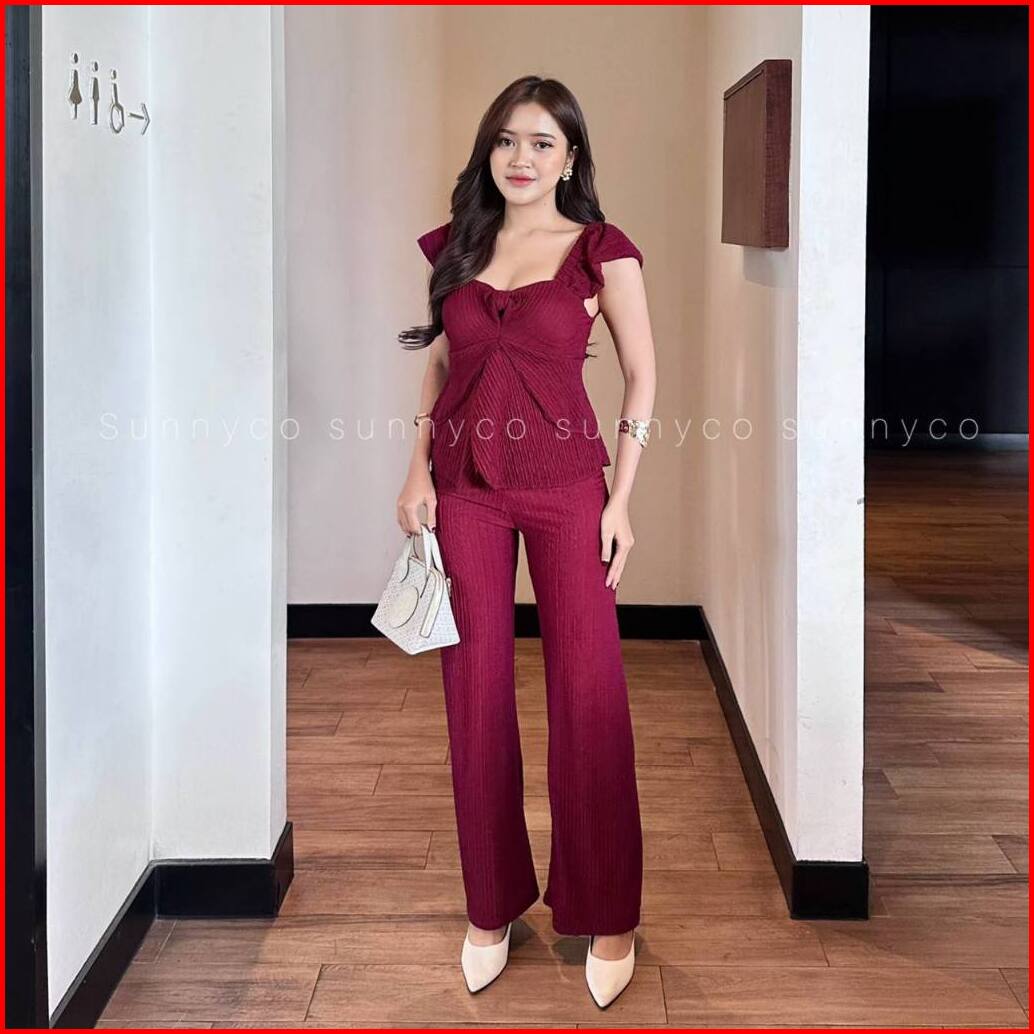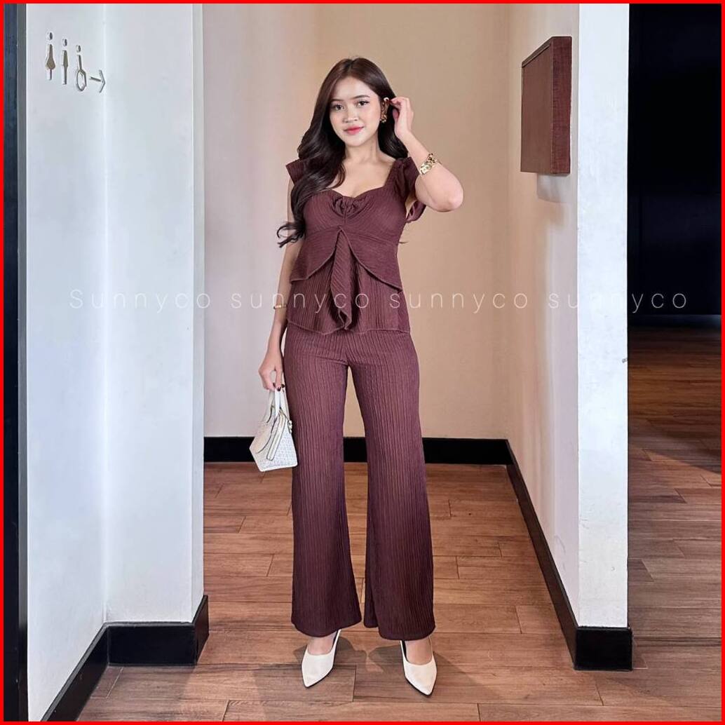 Audry One Set Setelan Atasan Bentuk Mawar Setelan Lady Crush