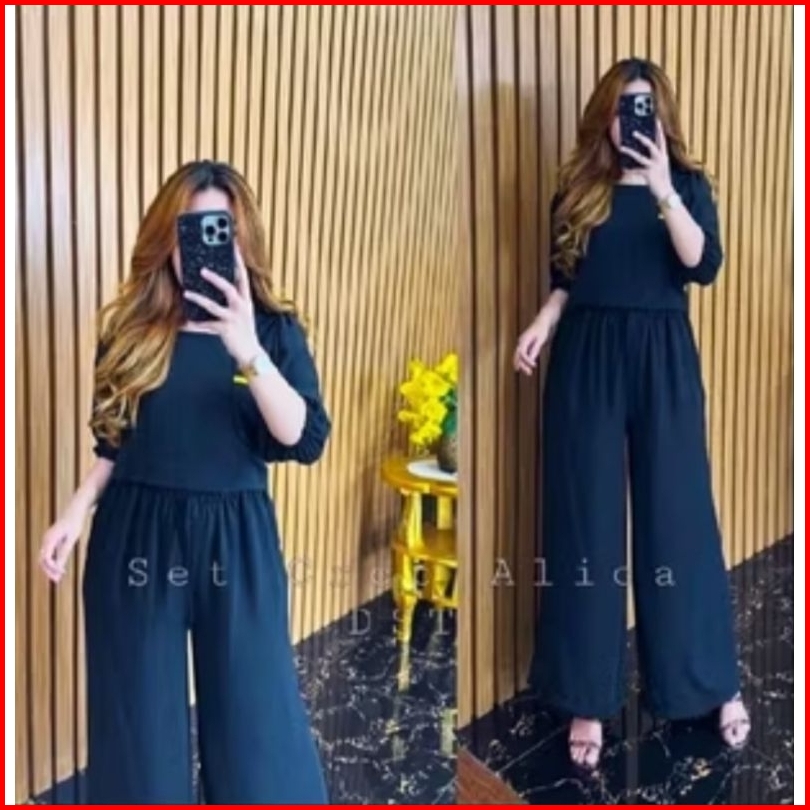 One Set Cringkle Wanita Setelan Alica Set Crop Top Wanita Kekinian Baju Setelan One Set Crinkle