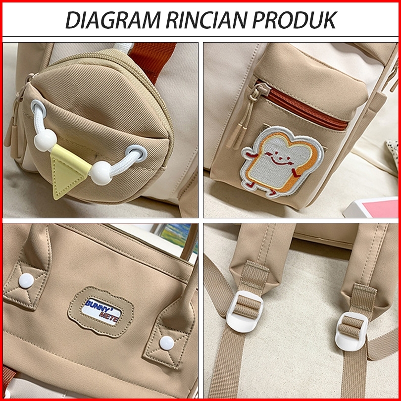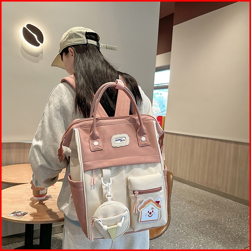 Nine Stars Tas Sekolah Korean Tas Ransel Kuliah Wanita Waterproof Tas Ransel Laptop 16 Inch Backpack