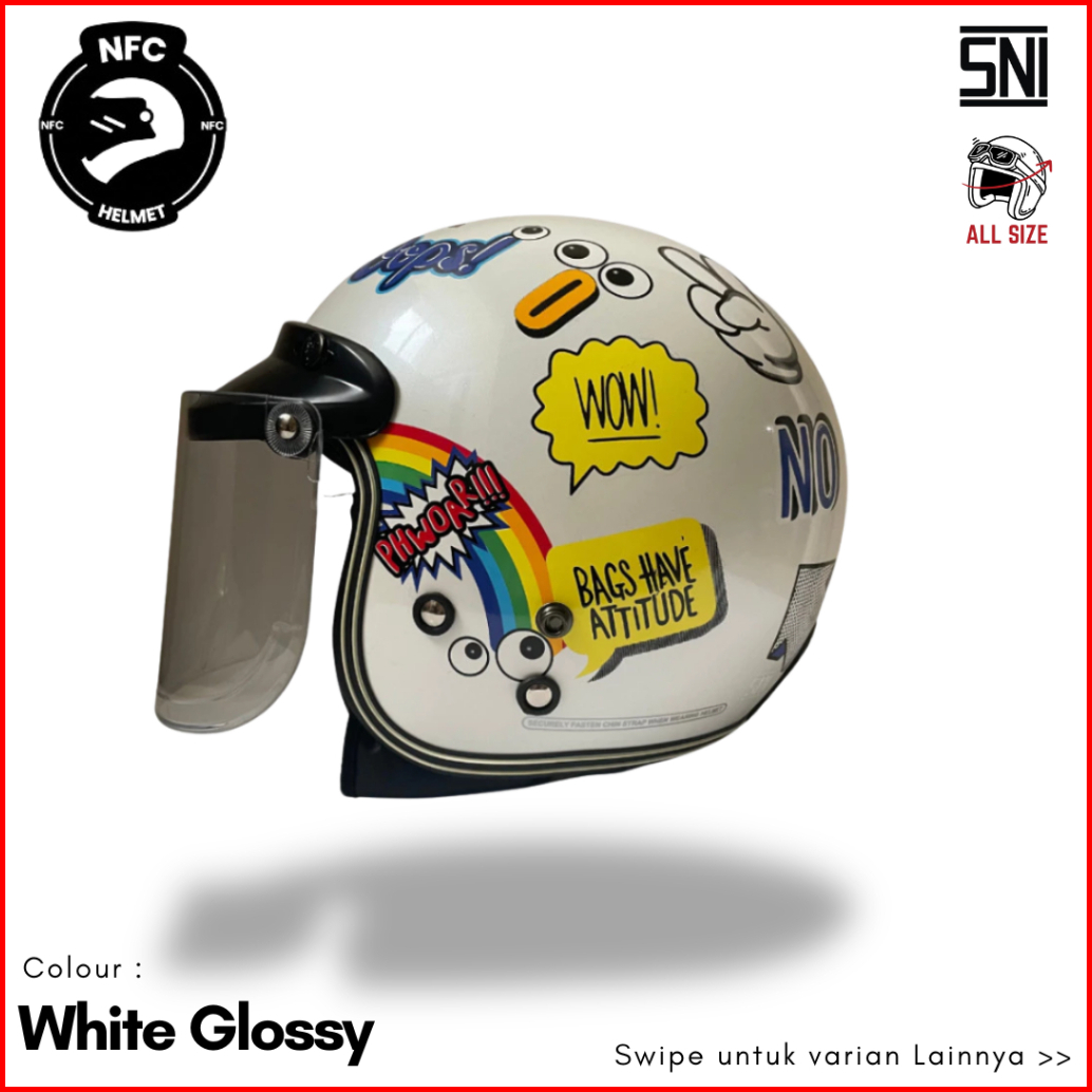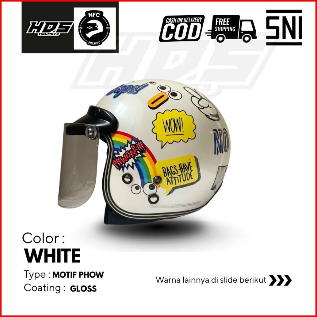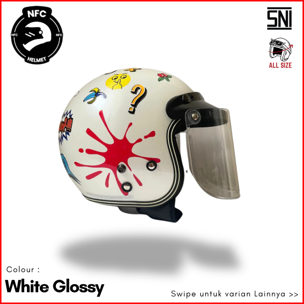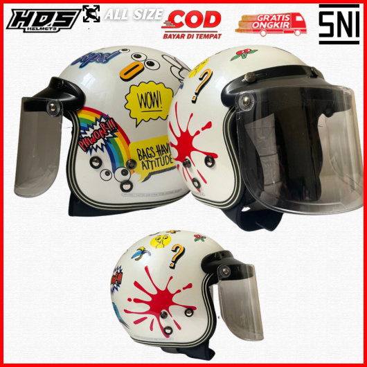 Helm Bogo Retro Klasik Dewasa Putih Motif Phow - Sni All Size