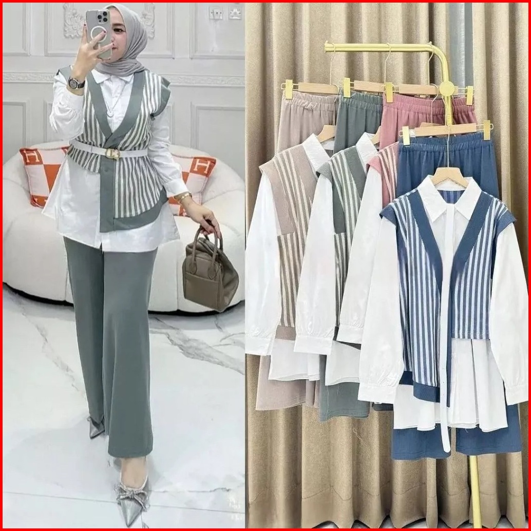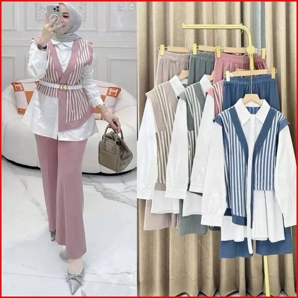 Dena One Set Pakaian Wanita Bahan Cringkle Setelan 2 In 1 Free Belt Kekinian Terbaru Atasan Dan Celana Wanita
