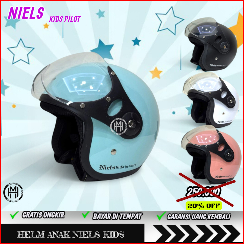 Helm Anak-anak Model Pilot Niels Usia 3-8 Tahun Helm Anak Kids