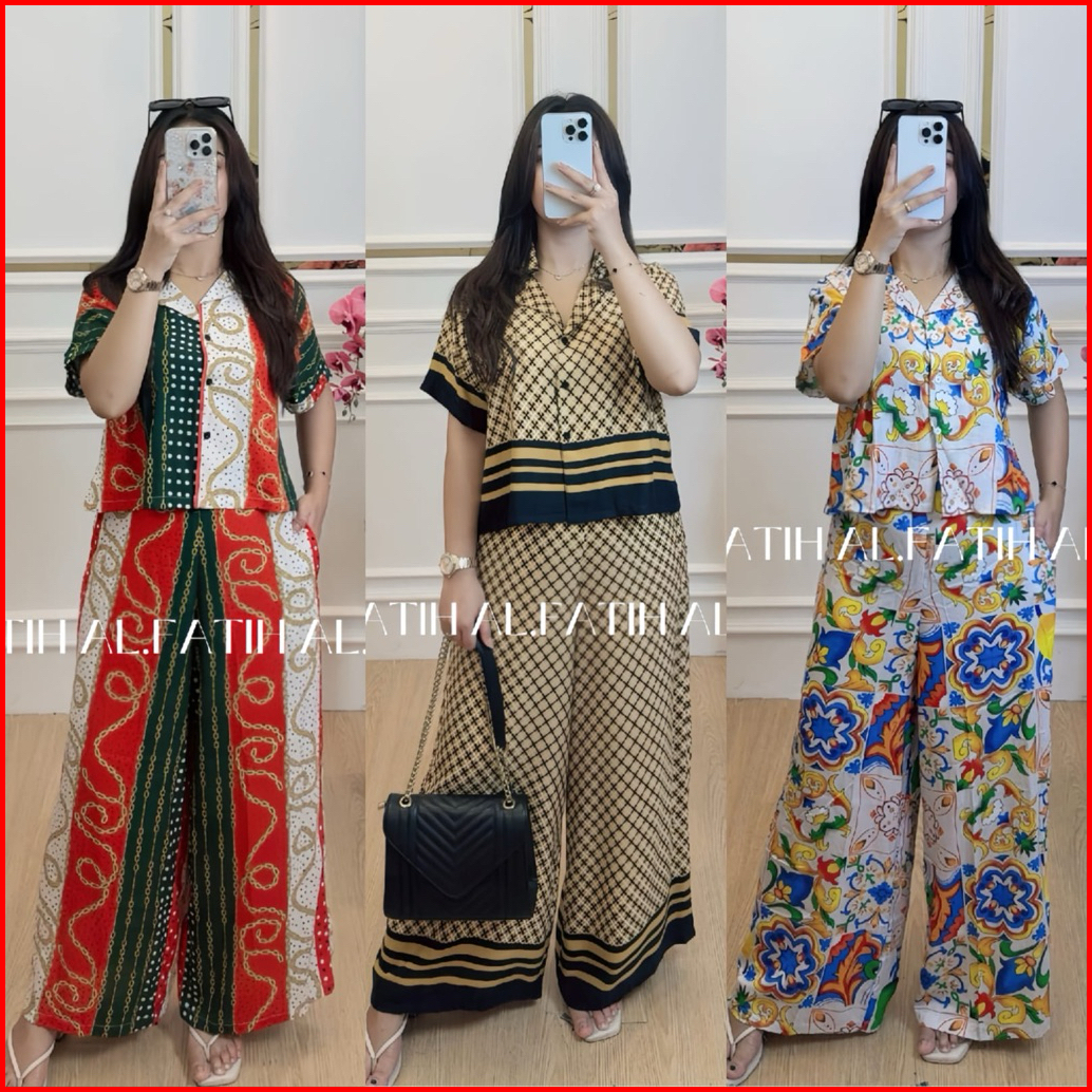One Set Crop Setelan Celana Kulot Wanita Hightwaist Rayon Premium Busui Friendly Kancing