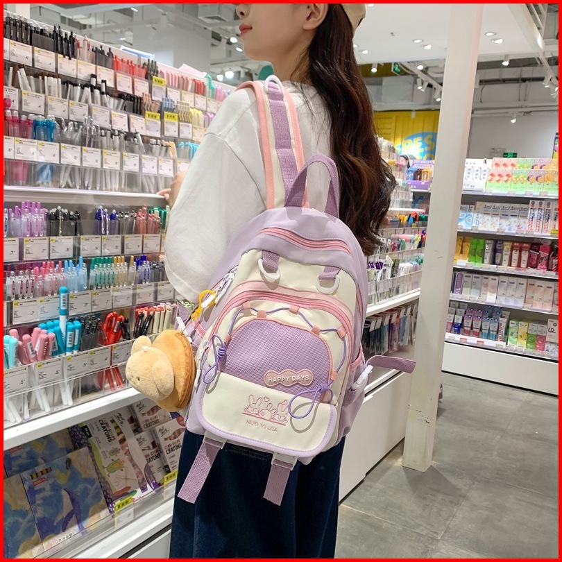 Tas Sekolah Macaroon Tas Cewek Korean Style Kuliah Tas Ransel Laptop Kapasitas Besar Lucu Wanita Cantik Backpack Spp