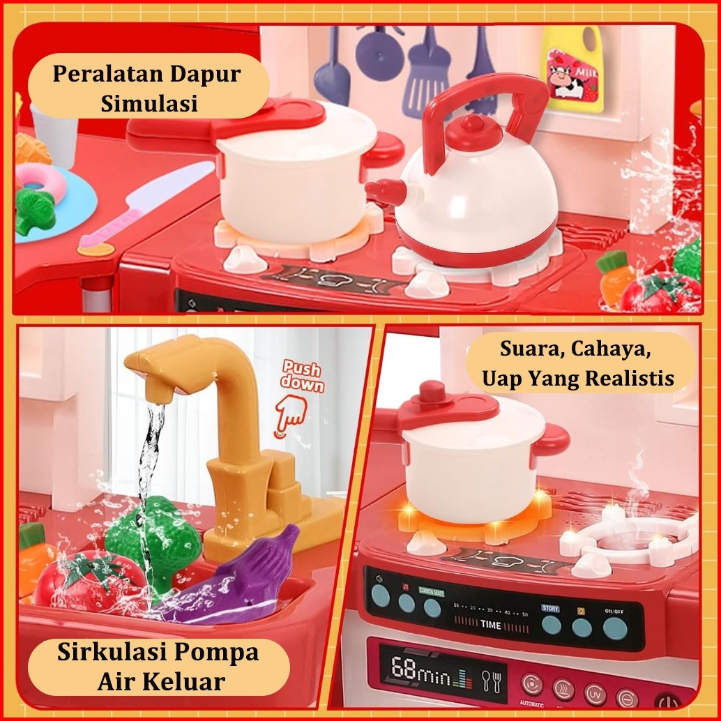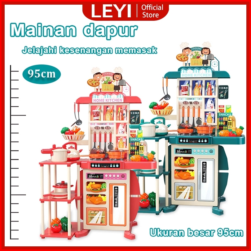 Leyi 95cm Mainan Masak Masakan Jumbo Wastafel Dapur Spraying Mist Mainan Masak Anak Perempuan