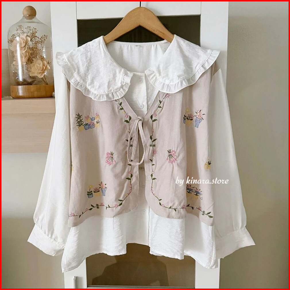 Delphia Blouse Atasan Bordir Korean Style Ld 120 110 Dst Atasan Wanita Lengan Panjang