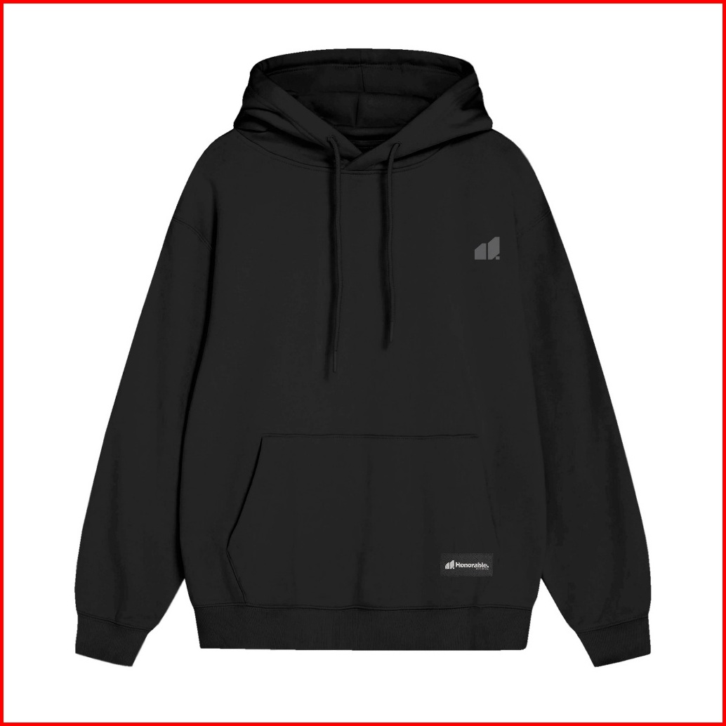 Honorable - Hoodie Pria Fleece Hitam