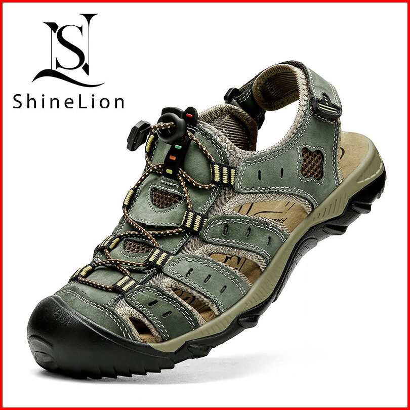 Shinelion Kp-2026 Sandal Kulit Asli Pria Original Tapak Karet Tebal Ringan Sandal Pria Gunung Trendy Outdoor Pantai Sepa