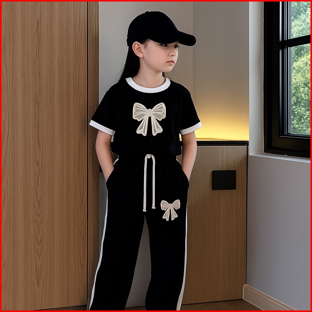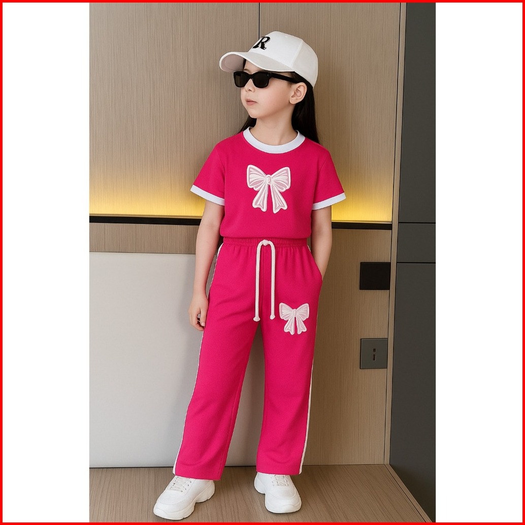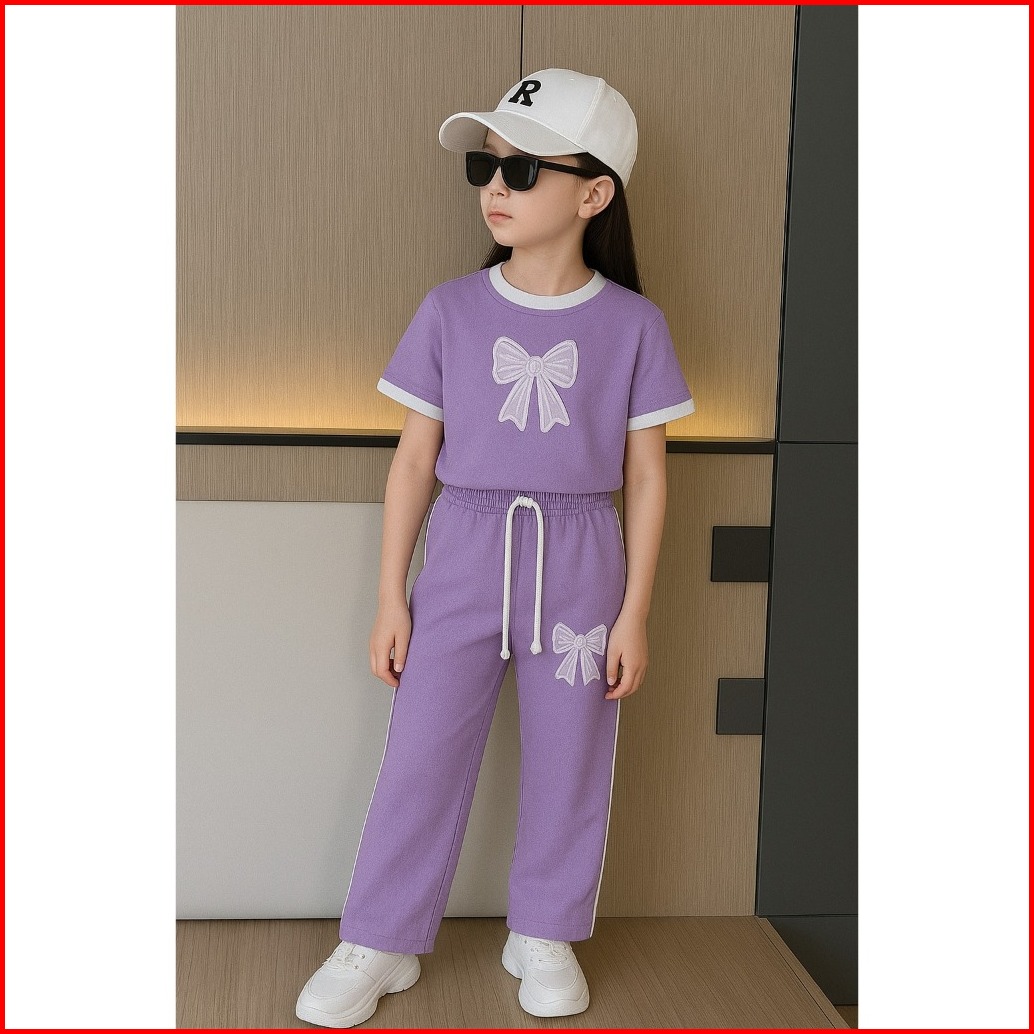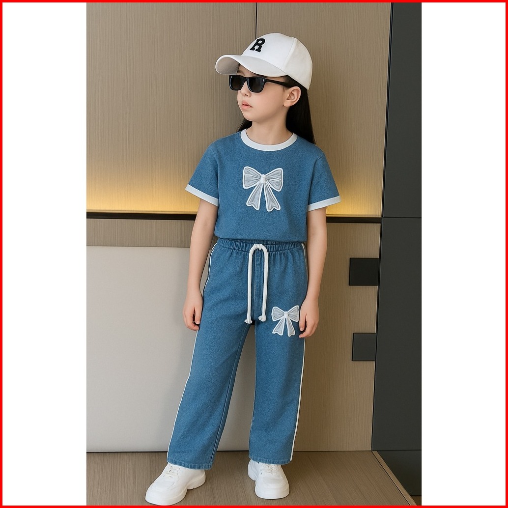 One Set Setelan Anak Perempuan Model Pita Set Viral Anak 1-10 Tahun