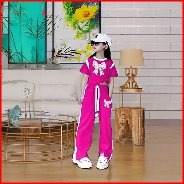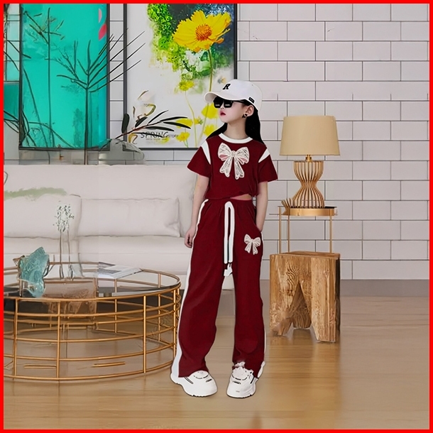 Setelan Baju Anak Perempuan Set Crope Pita Dan Celana Kulot Panjang Oneset Fashion Baju Dan Celana