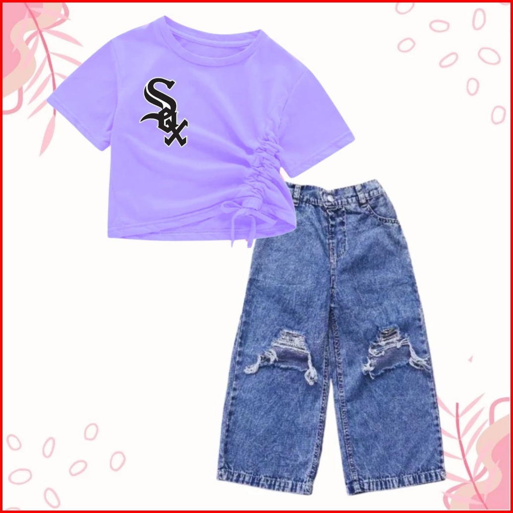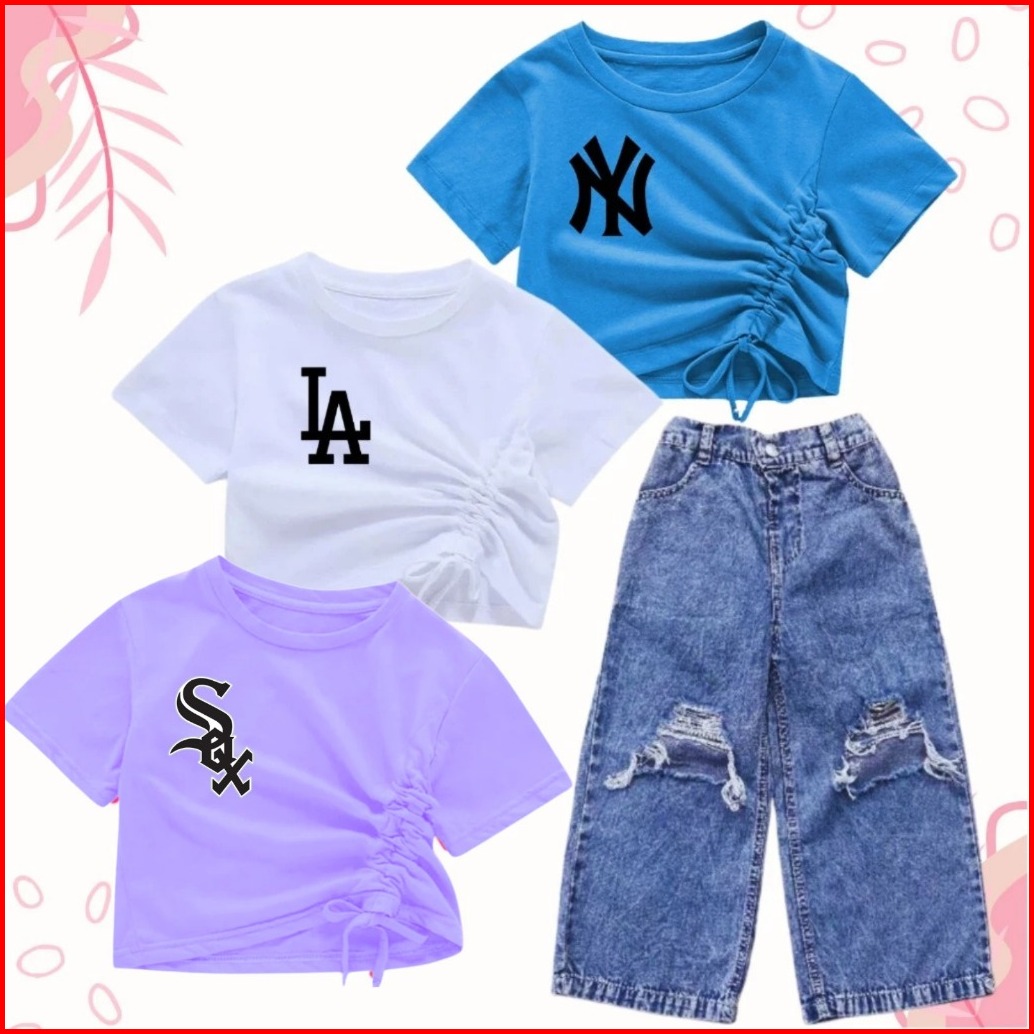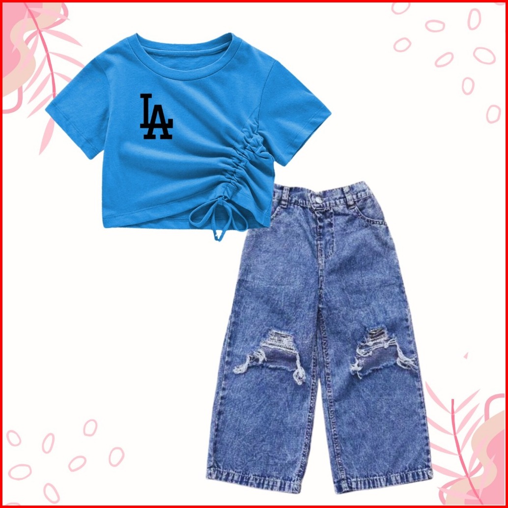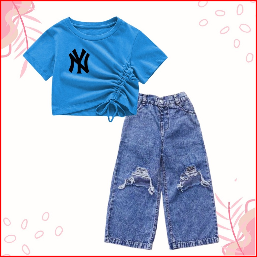 Setelan Croptop Dan Kulot Jeans Sobek Anak Usia 1-10 Tahun
