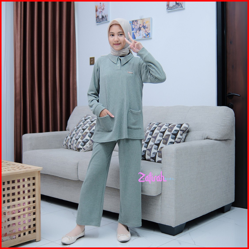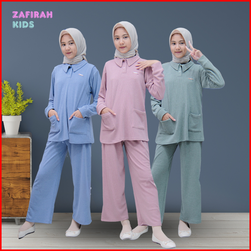 Setelan Anak Perempuan Muthia One Set Setcel Knit Polos Baju Dan Celana Zafirah Kids