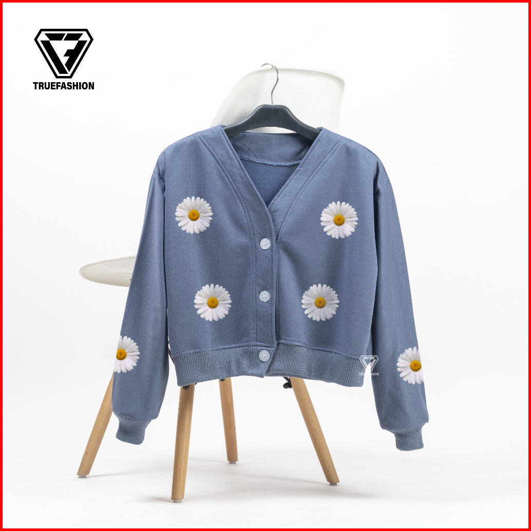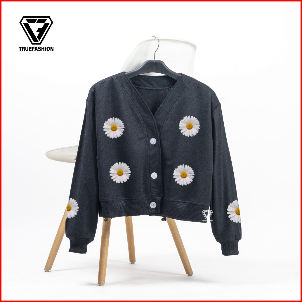 Tf - Jennie Daisy Flower Cardigan Crop Wanita Korean Style Lalisa Kardigan Sweater