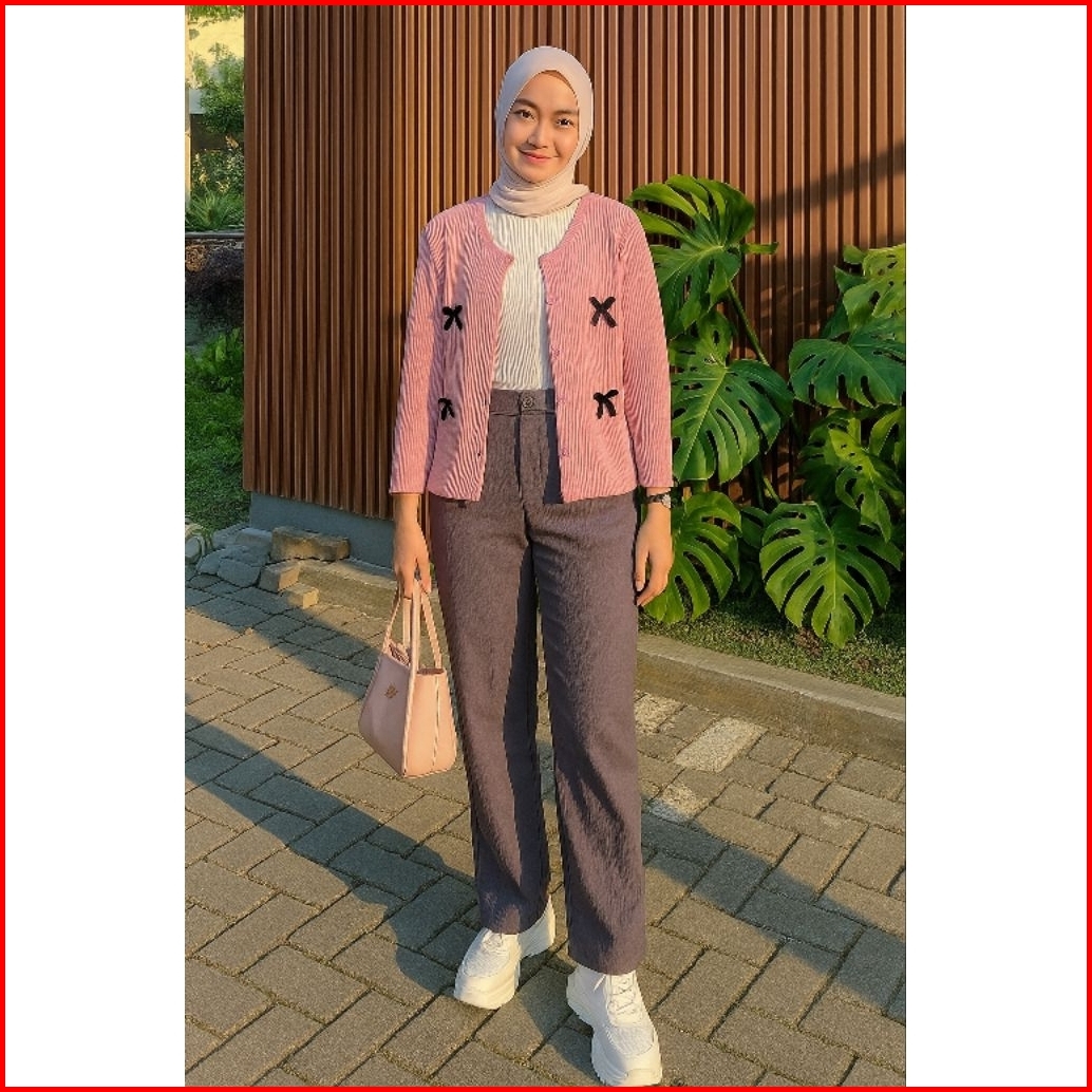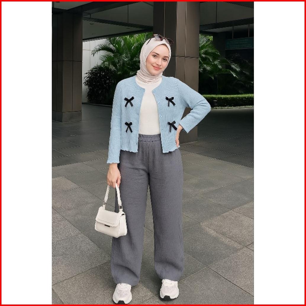 Vienetta Id - Oneset Wanita Remaja Kekinian Atasan Cardi Pita Cocute Kulot Crinkle Airflow Outfit Kekinian 2025 Oneset R