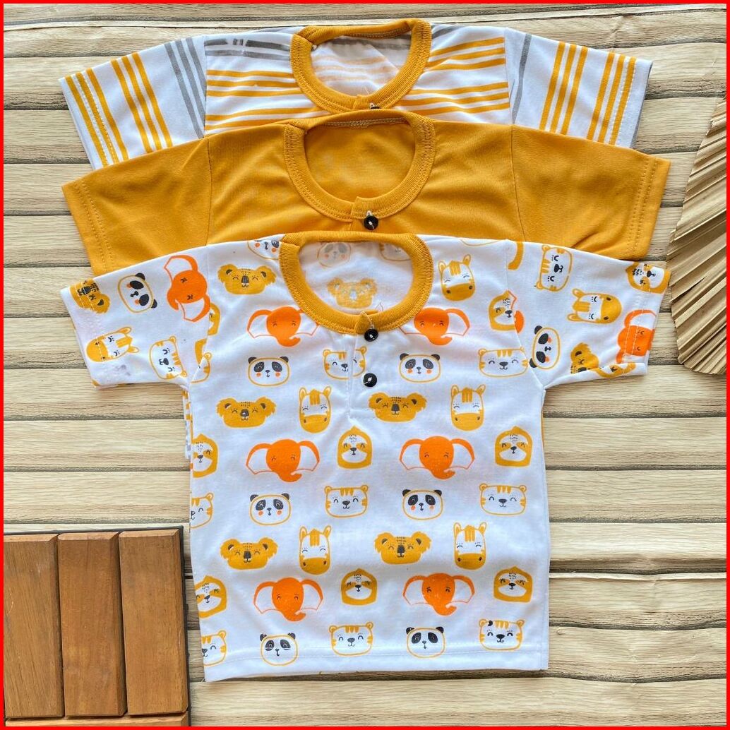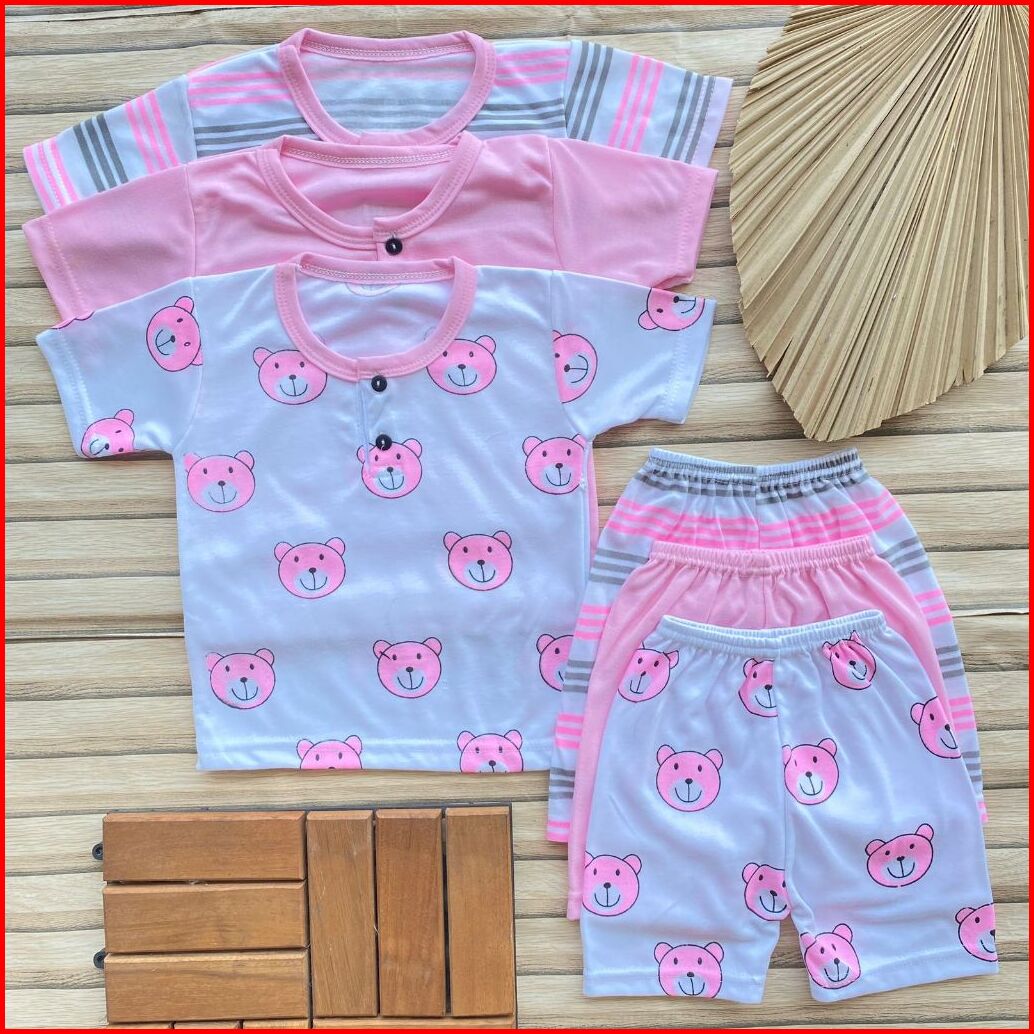 Isi 3 Pcs Setelan Bayi Usia 3-12 Bulan Lengan Pendek Celana Pendek Kancing Depan Bayi Laki Laki Perempuan Baju Bayi Hari