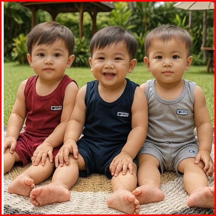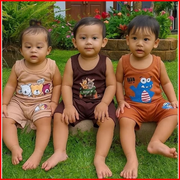3 Set Setelan Singlet Baju Celana Bayi Polos Sni Viear Baby S M L Xl