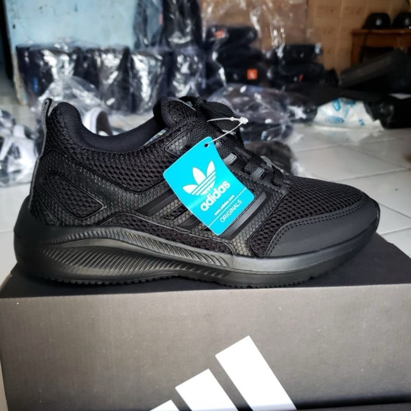 DISKON Sepatu Sekolah - sepatu adidas hitam - Seragam sekolah cewek cowo tk sd smp laki perempuan full black