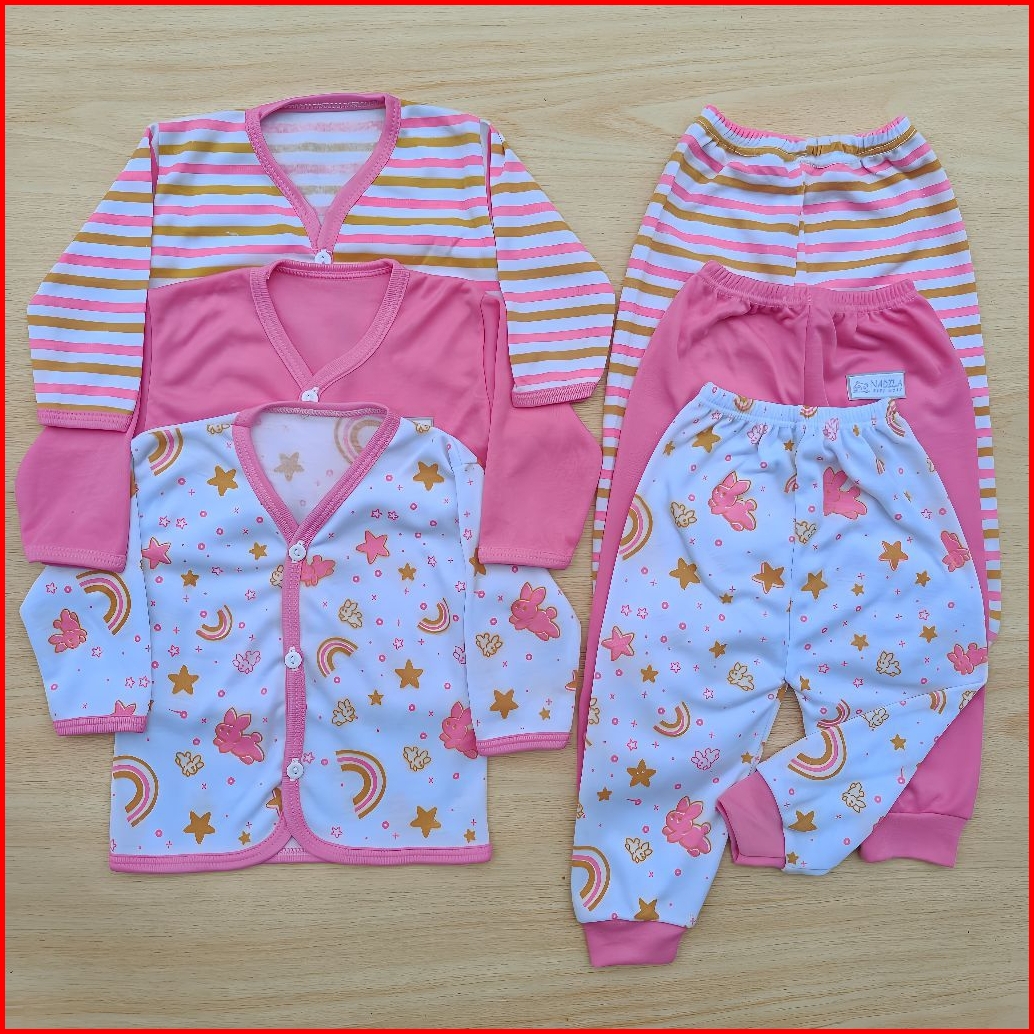 Promo 6pcs 3stel Baju Bayi Lengan Panjang 0-4 Bulan Lucu Baju Bayi Lengan Panjang Newborn Baju Bayi Baru Lahir Newborn