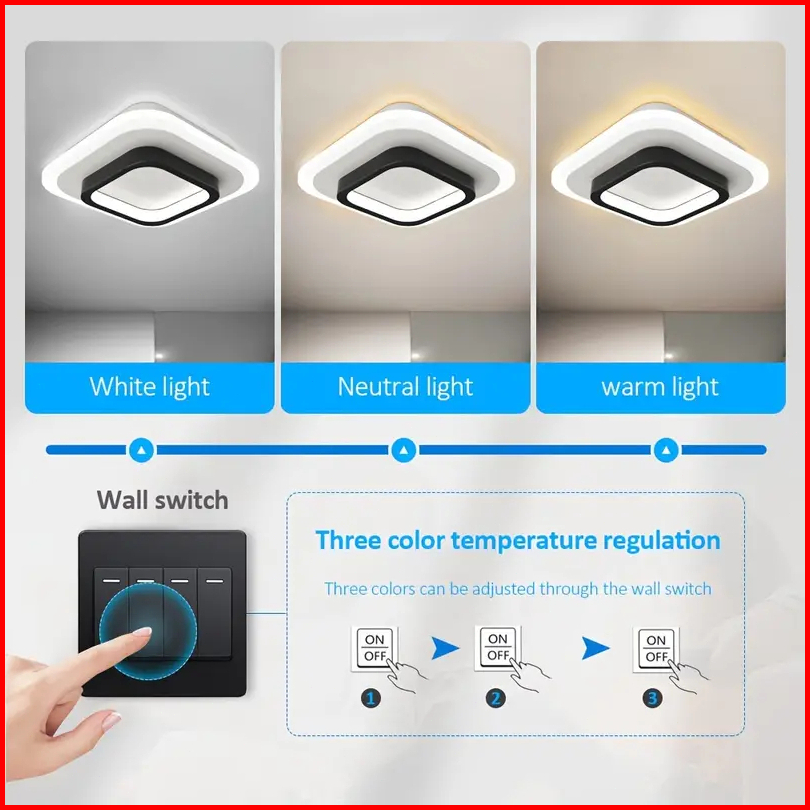 Led Lampu Langit-langit Sederhana 3 Warna Penyesuaian Ceiling Light Perlengkapan Pencahayaan Dekoratif Untuk Kamar Tidur