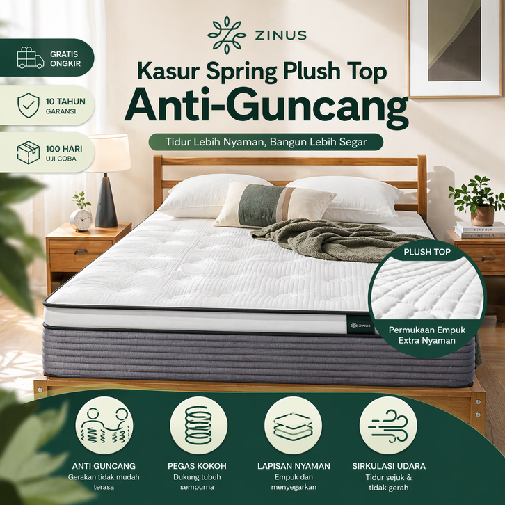 Kasur Springbed Zinus Plush Top In A Box Empuk Nyaman Awet Premium Gratis Ongkir Semua Ukuran