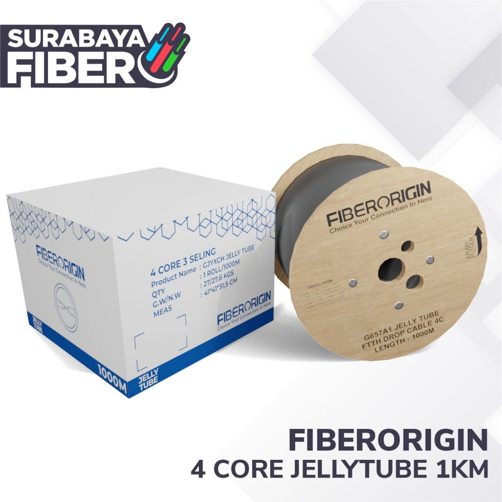 Fiberorigin Jellytube 4 Core 3 Seling 2000M - Dropcore Tube Jelly 4Core G657A1 - Kabel FTTH Jeli