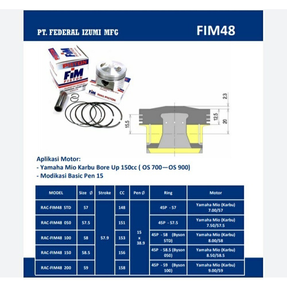 Piston Kit MIO XB FIM IZUMI 53.5 54 54.5 55 57 57.5 58 58.5 59 PIN 15 FIM47 Mio Bore Up XB Seher Bore Up Mio XB XXB