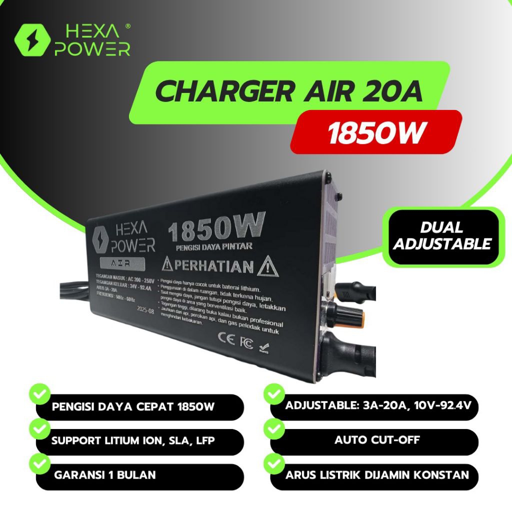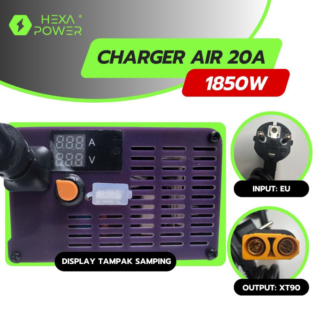 Charger Motor Listrik Lite Hexa Power Adjustable Current Gesits Polytron Alva One Cervo BRT 1-20A Li-ion XT90 M23 LiFePO4 LFP EU Supports