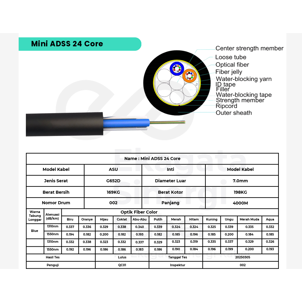 Adss Mini 4C 6C 12C 24C 2000 Meter 2Km Kabel Fiber Optik Netcable