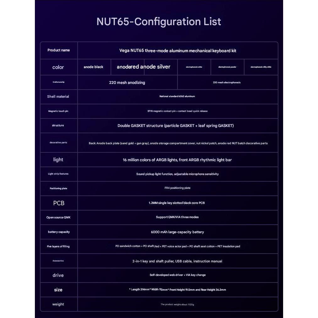 Weikav Nut65 Barebone Tri Mode Connection Gasket Mount 65 PERSEN Layout Mechanical Keyboard