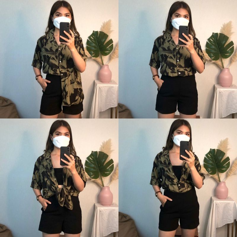 MUST Kemeja Hawai Pria Wanita Motif Printing Abstrak Vintage Casual Shirt Lengan Pendek Retro